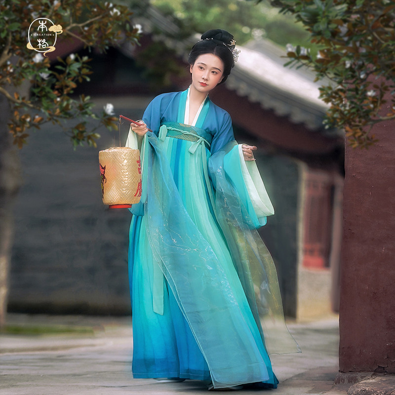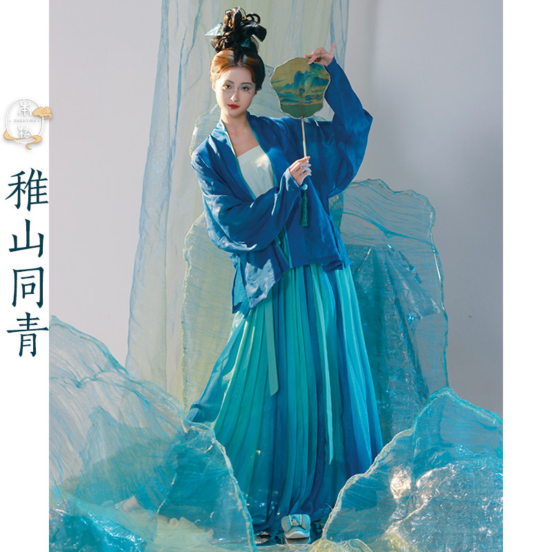 斜襟长衫 汉洋折衷套装 马面裙显瘦清新紫色蓝色 春水如兰 醉时阁
