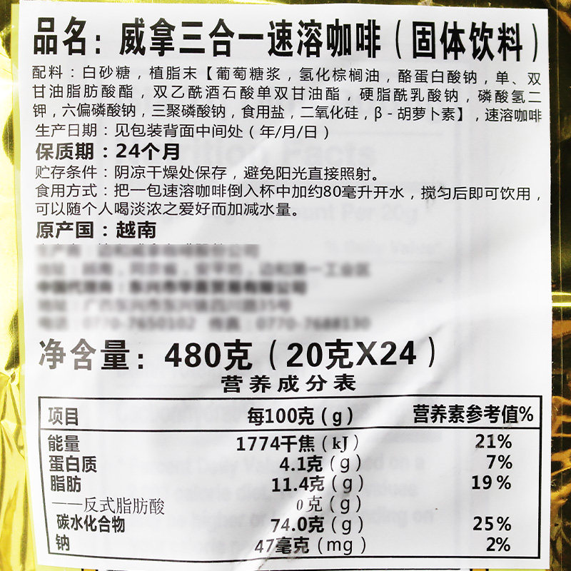 越南原装 进口威拿咖啡粉vinacafe三合一速溶咖啡24小包小条袋装