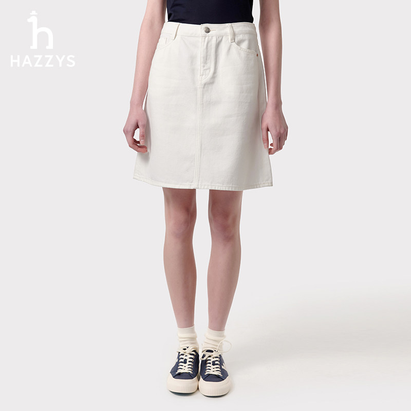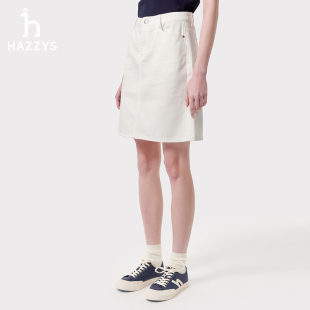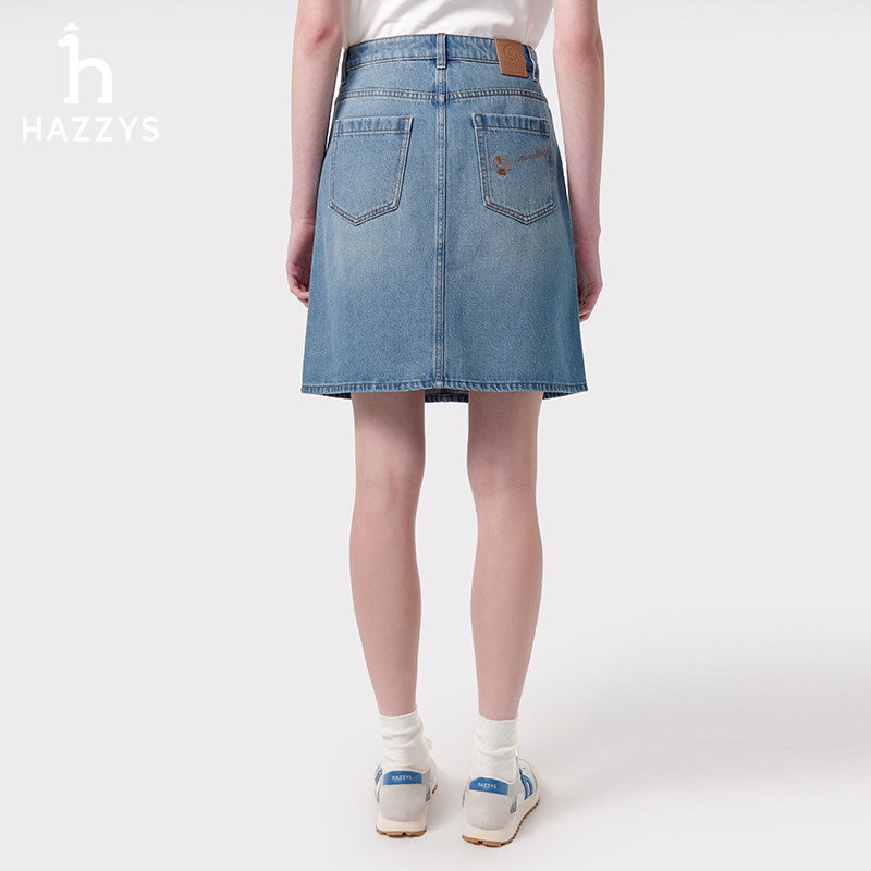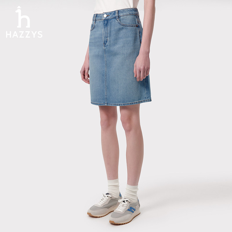 Hazzys哈吉斯牛仔短裙女士春夏季 蓝色通勤休闲半身裙简约裙子 正品