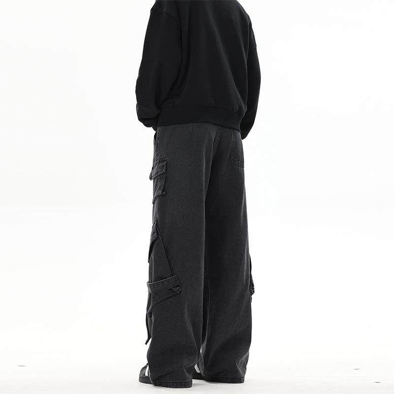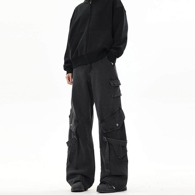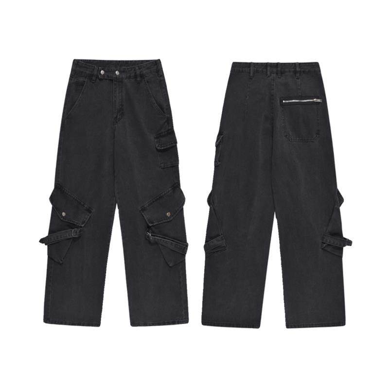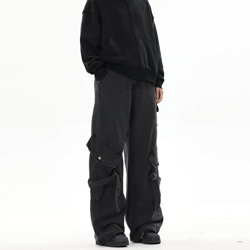 复古直筒宽松休闲vibe长裤 YOOTDS美式 男女薄款 牛仔裤 高街黑色工装