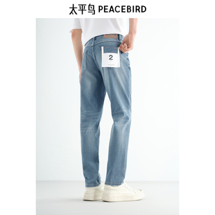 夏款 牛仔裤 太平鸟男装 休闲浅色原牛水洗清凉透气薄款 冰芯棉