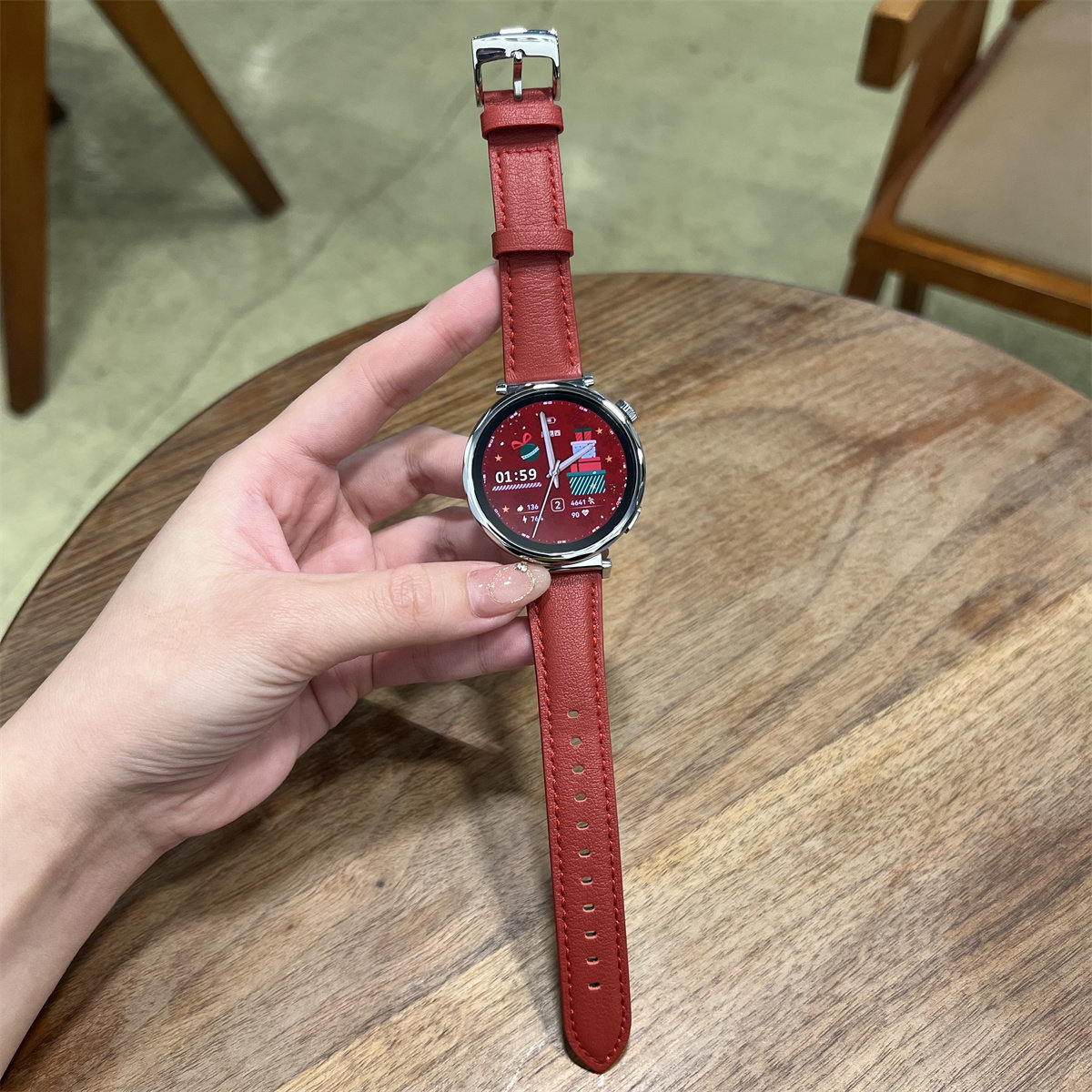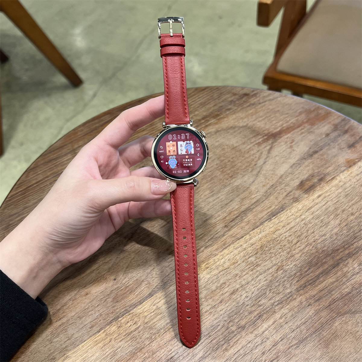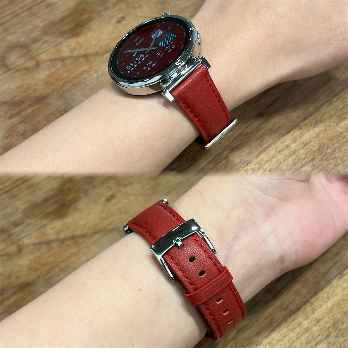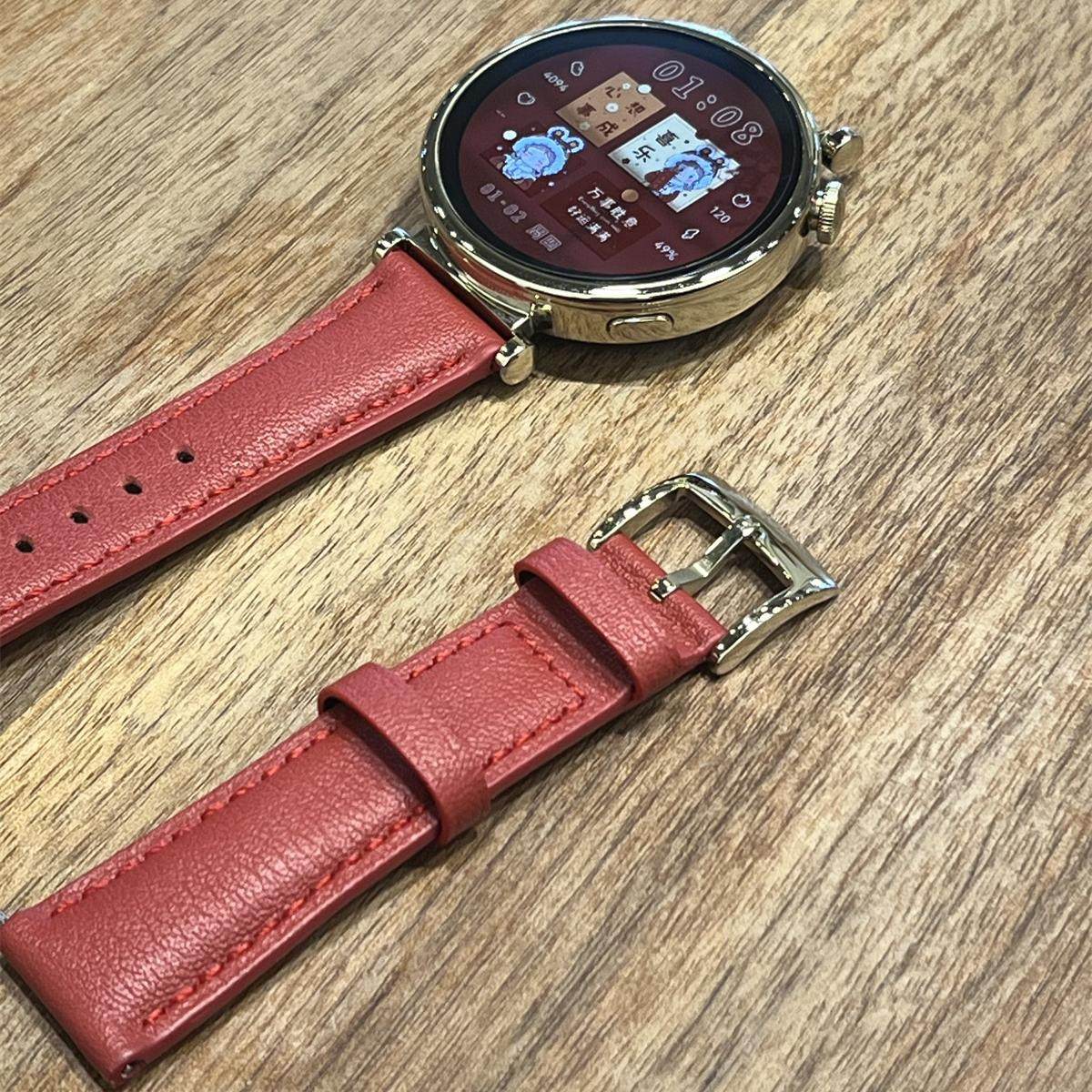 18MM男女 3新款 适用于华为GT5 46哑光红色Watch5软真牛皮表带FIT4