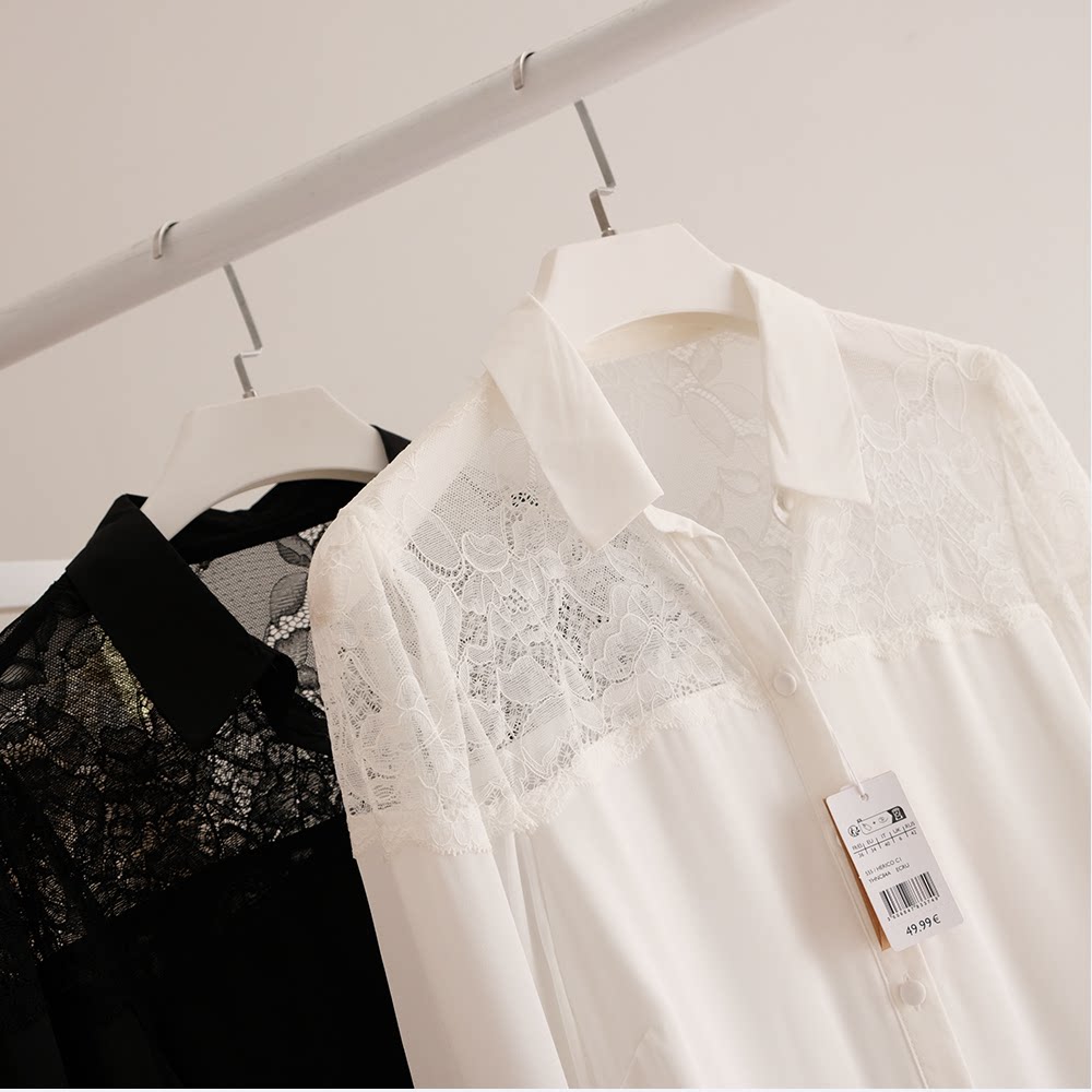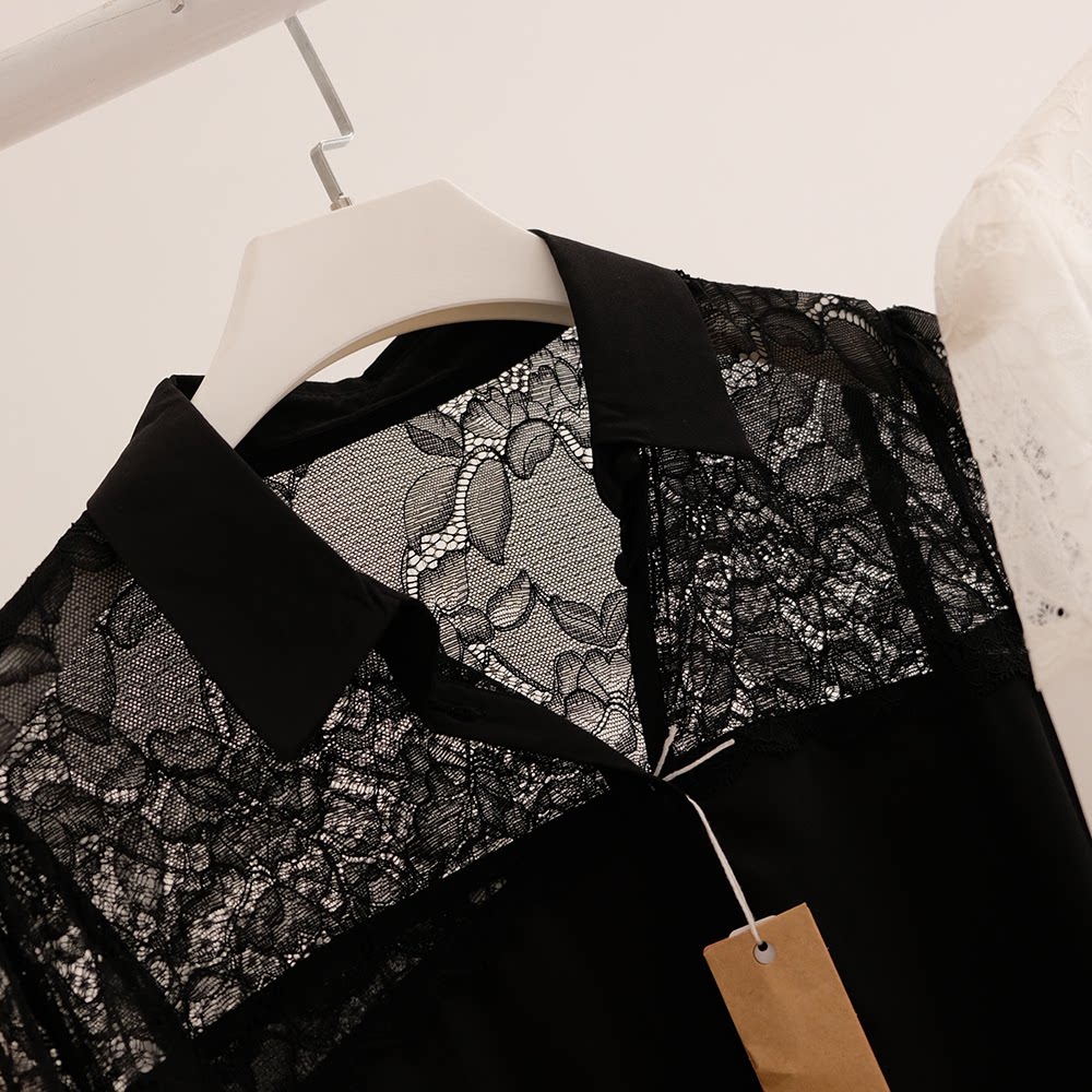 衬衫 欧美单 2025春性感镂空蕾丝拼接长袖 大福利 女衬衣 49.9欧