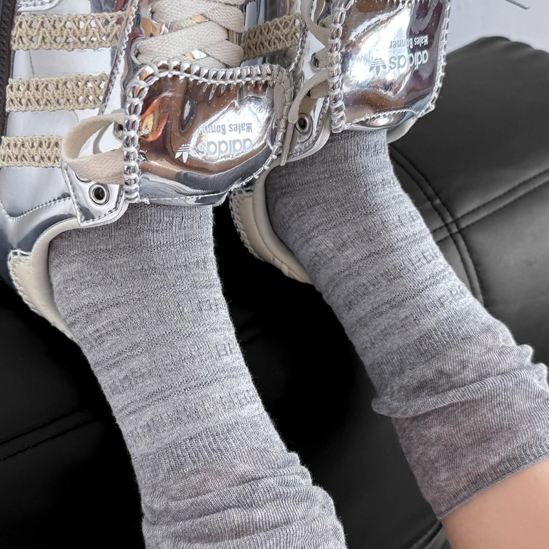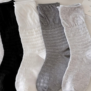 中筒袜拼接堆堆袜长筒袜搭配小皮鞋 纯色无骨灰色袜子女款 春夏季