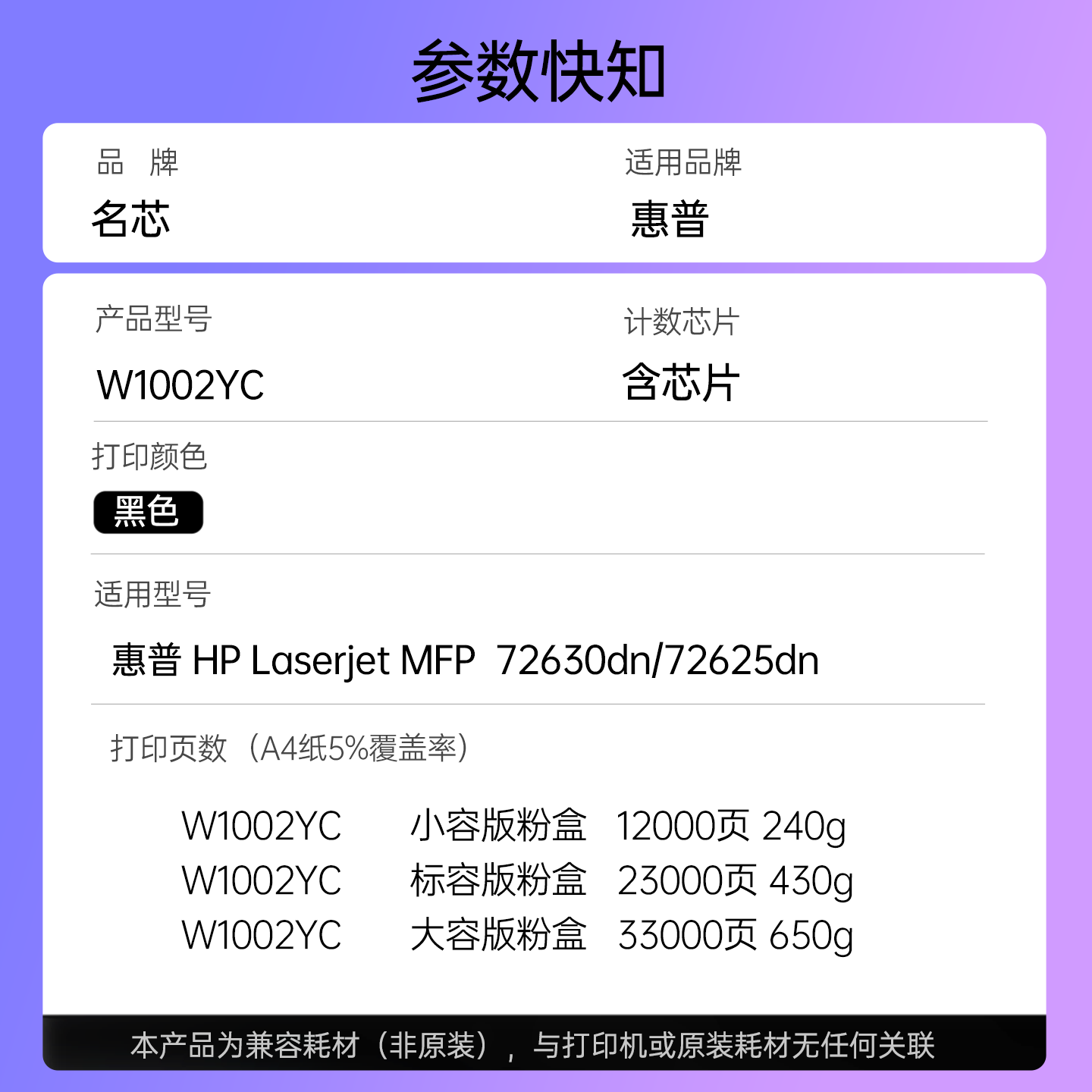 M72625dn碳粉M72630dn复印机粉盒打印机粉筒 名芯适用惠普W1002YC粉盒 MFP LaserJet W1002Y硒鼓墨粉