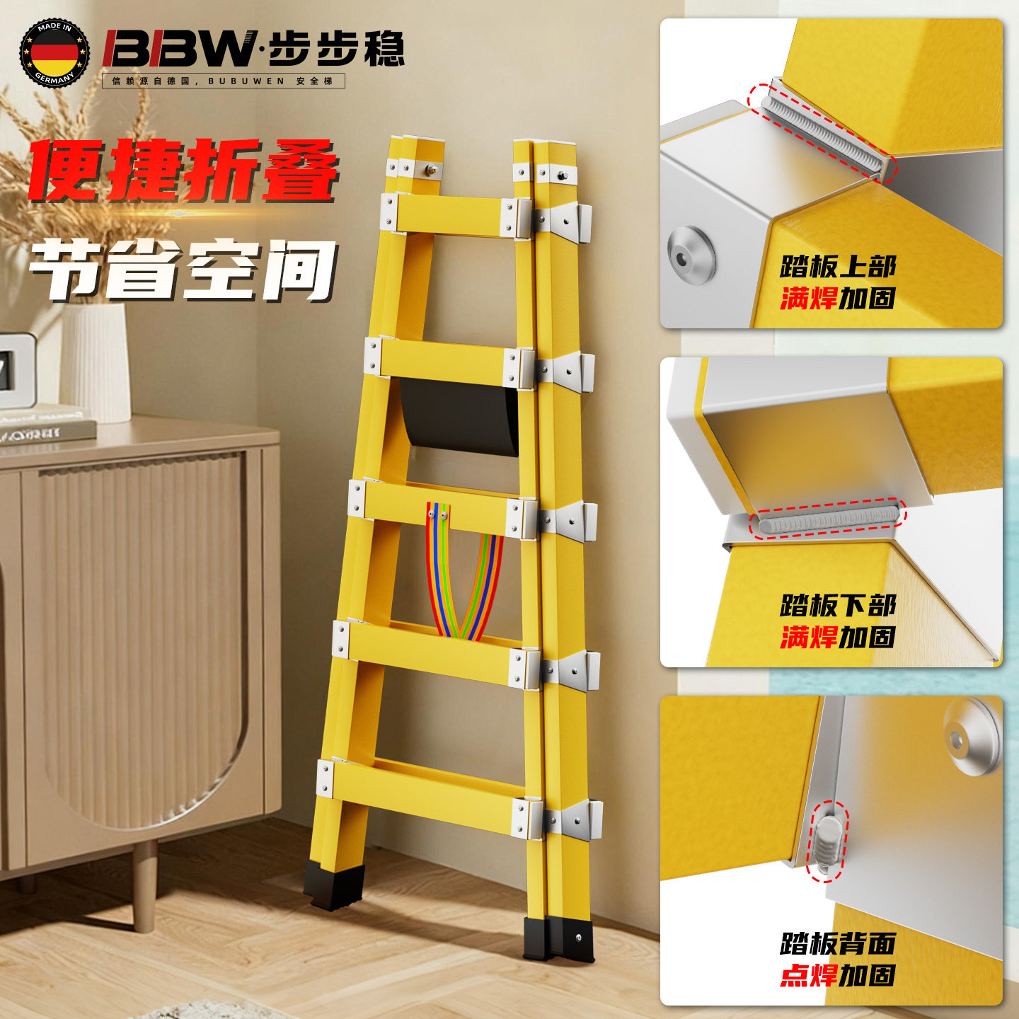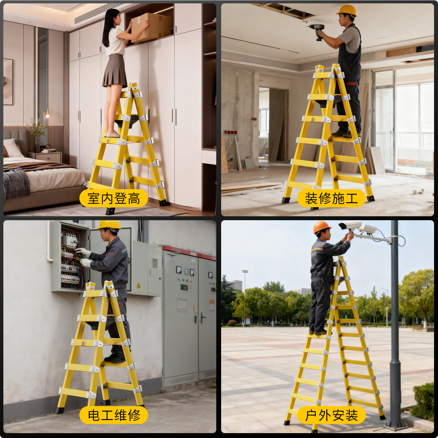 绝缘人字梯玻璃钢木工行走梯子电工专用梯焊接铝合金合梯工程楼梯