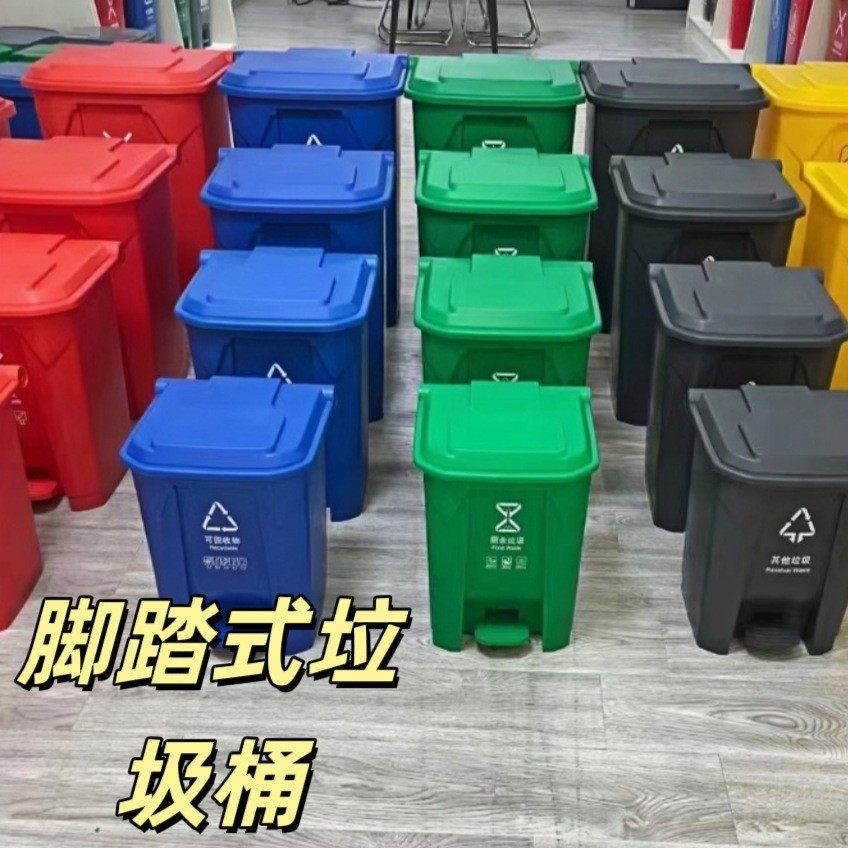 塑料垃圾桶30升50灰色80升红绿蓝黄升脚踏垃圾桶100k户外家用桶小