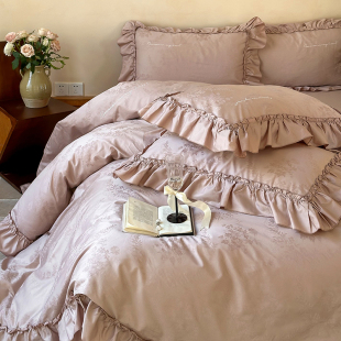 法式 浪漫贡缎全棉长绒棉提花四件套荷叶花边被套高级感公主风床单