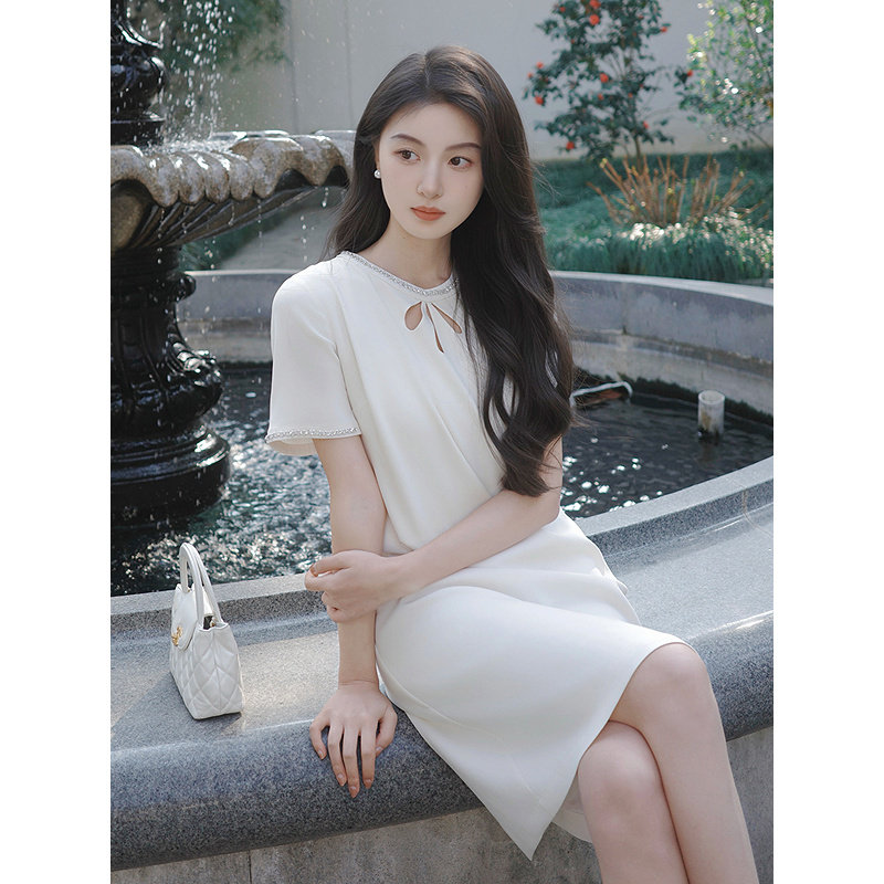 醋酸法式 新款 YINER音儿专选2025夏季 镂空钉珠连衣裙 周末花园