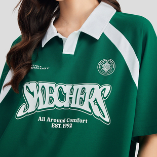 运动假两件t恤男长袖 美式 复古徽章情侣球衣polo衫 高寒同款