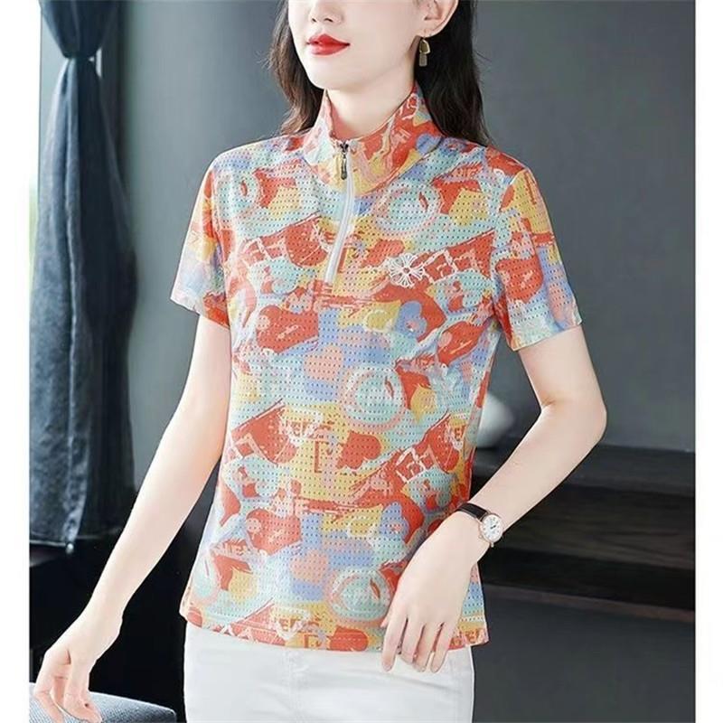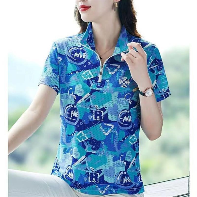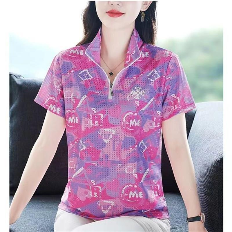 T恤打底衫 春秋季 女士长袖 大码 宽松翻领洋气Polo中年妈妈上衣 新款
