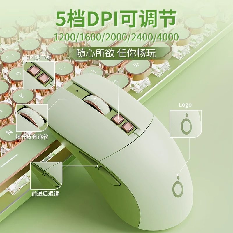机械手感键盘鼠标耳机三件套电竞游戏专用高颜值笔记本电脑台式 发光女生外设女 外接办公静音无声有线键鼠套装