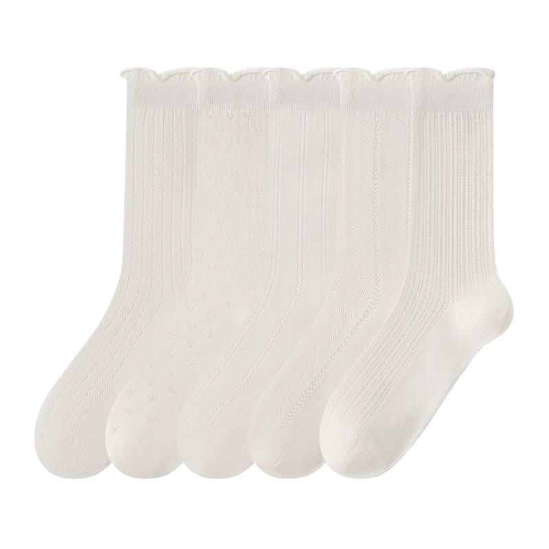 夏天长筒 学院风堆堆长袜搭配小皮鞋 白色袜子女纯棉中筒袜夏季 薄款