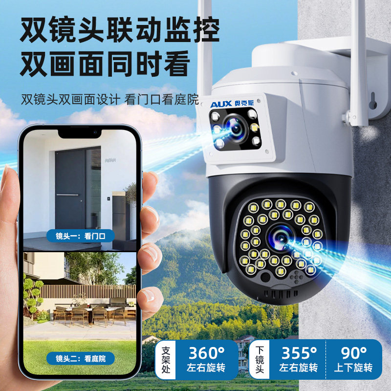 奥克斯监控摄像头360度无死角室外防水家用手机远程4G监控器夜视