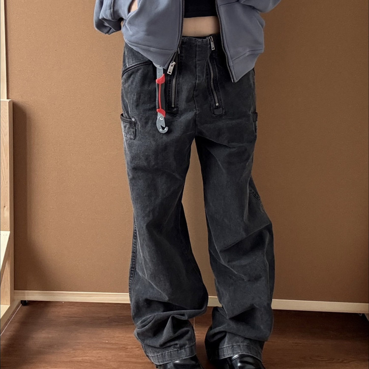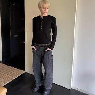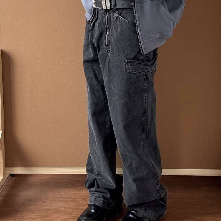 Baseplate 多口袋洗水做旧暗纹磨毛宽松直筒微baggy德工裤