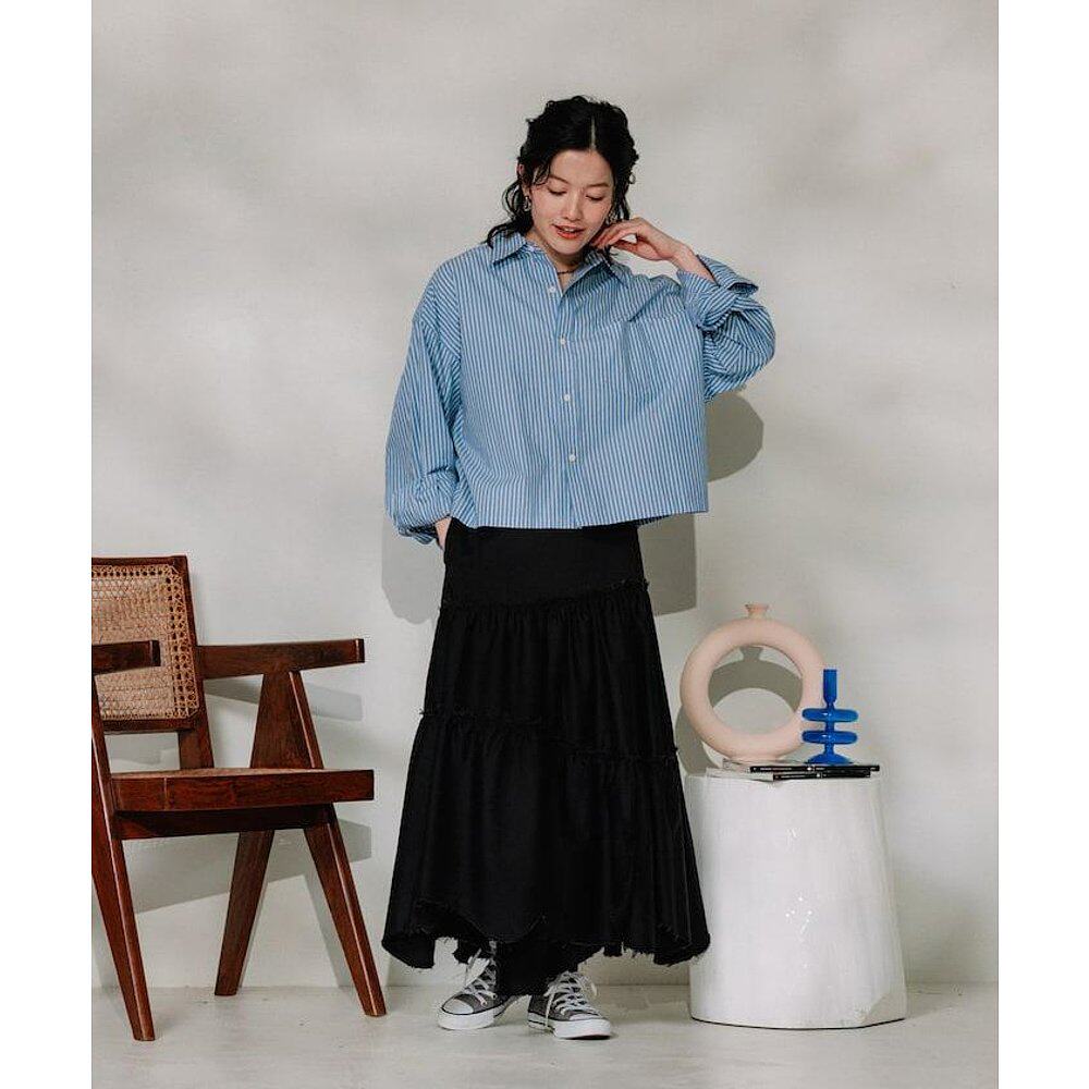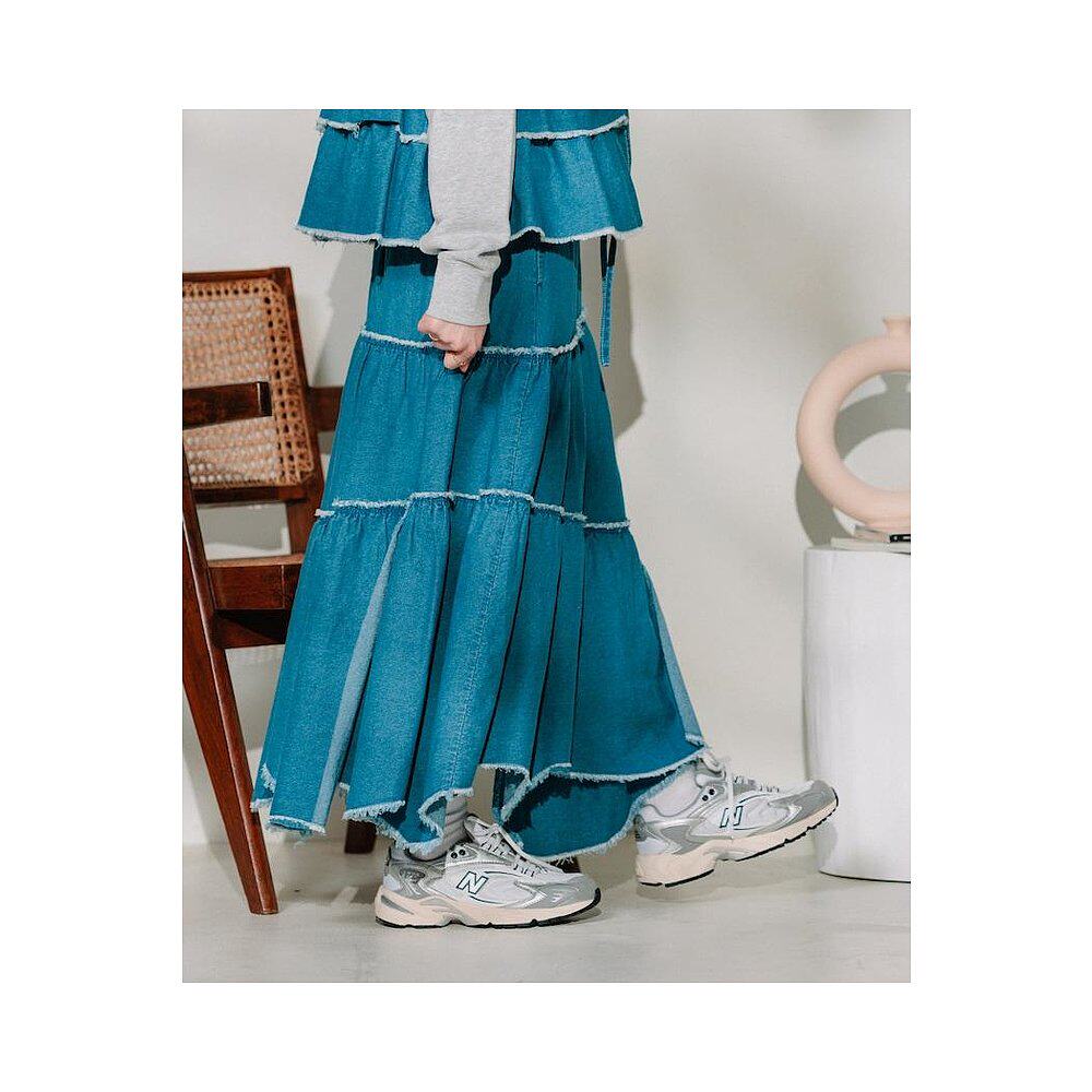 褶边半身裙 1h可退 联名 KAP 牛仔裙裙子针织潮流时 日本直邮RED