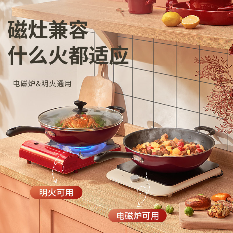 九阳不粘锅炒锅家用炒菜锅电磁炉专用燃气灶煤气灶平底锅适用锅具
