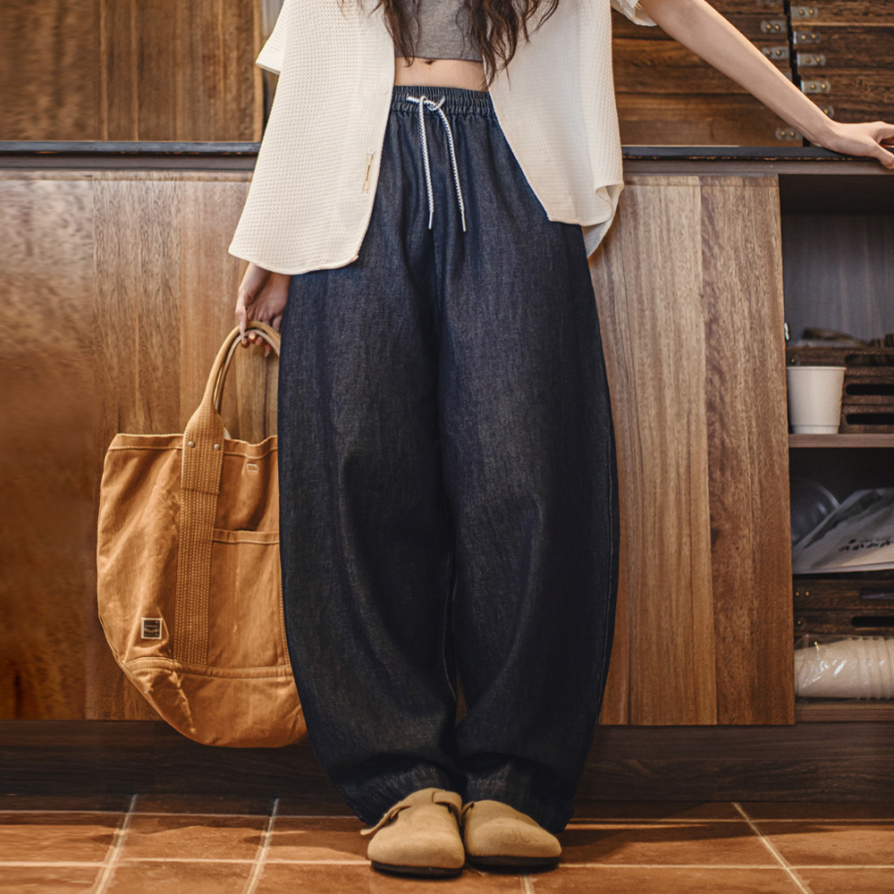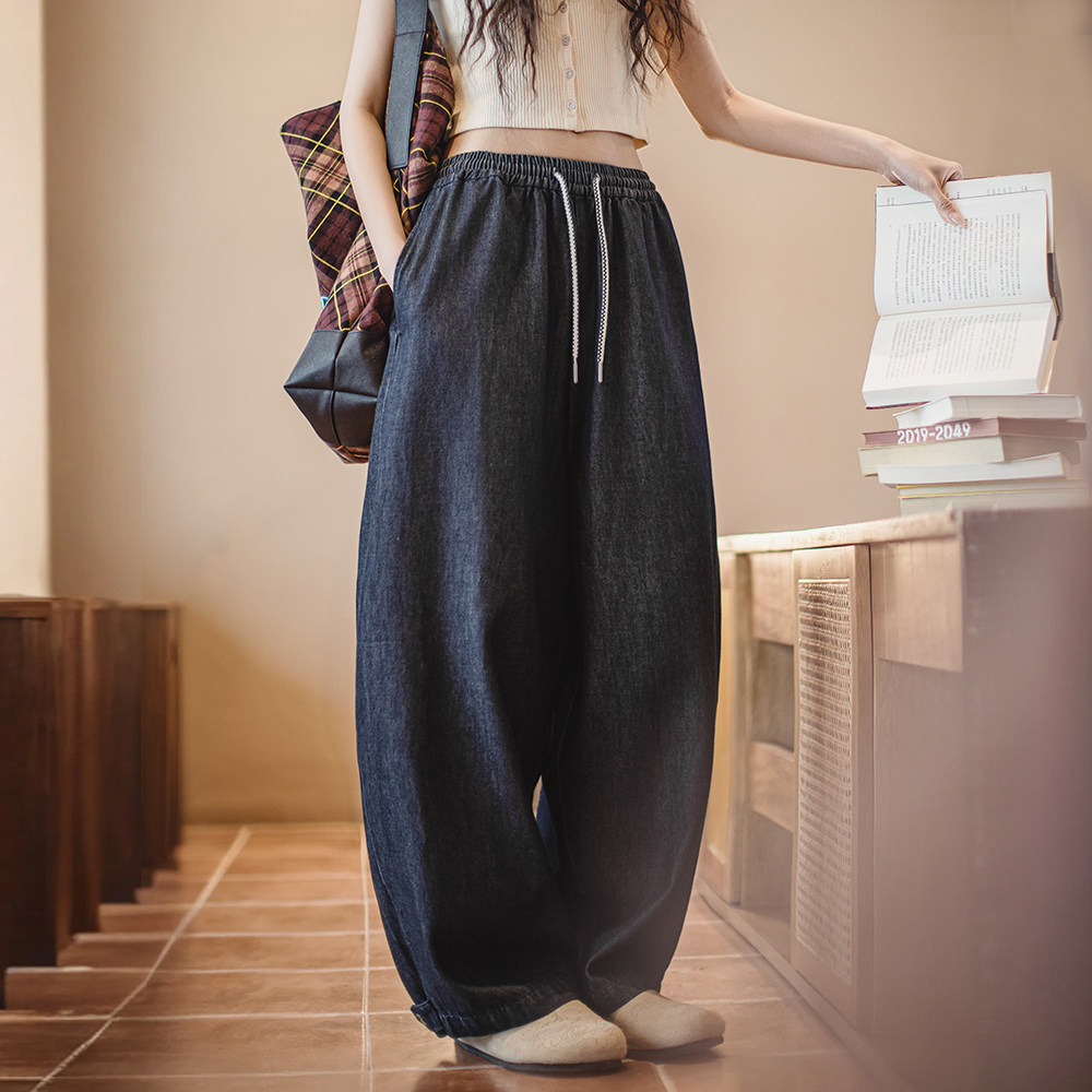 宽松复古金属扣百搭裤 LYNEE 女2025新款 高腰阔腿牛仔裤 子 星轨