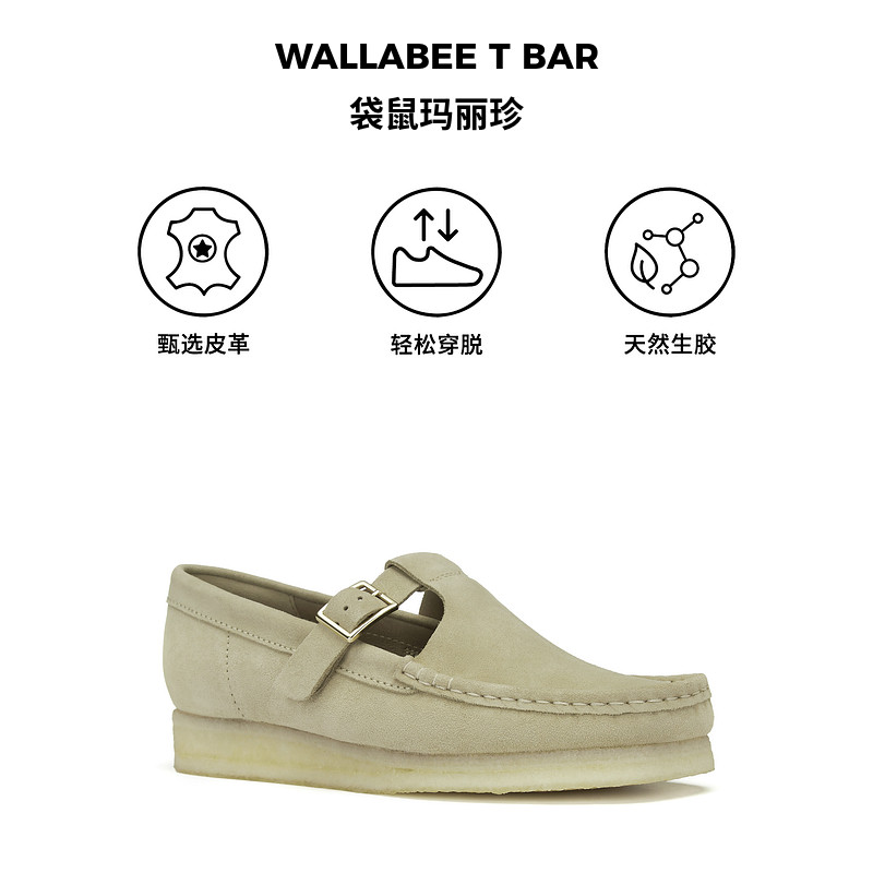Clarks其乐Originals袋鼠玛丽珍女鞋 复古反毛皮生胶厚底鞋
