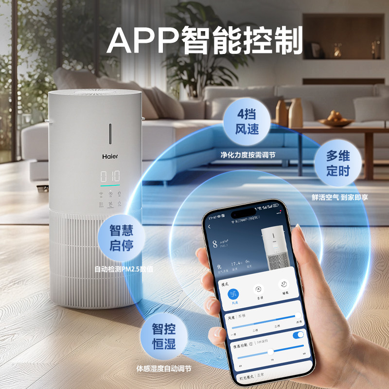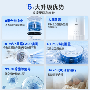 海尔麦浪空气净化加湿器一体机家用除甲醛菌灰尘去异味空气净化器
