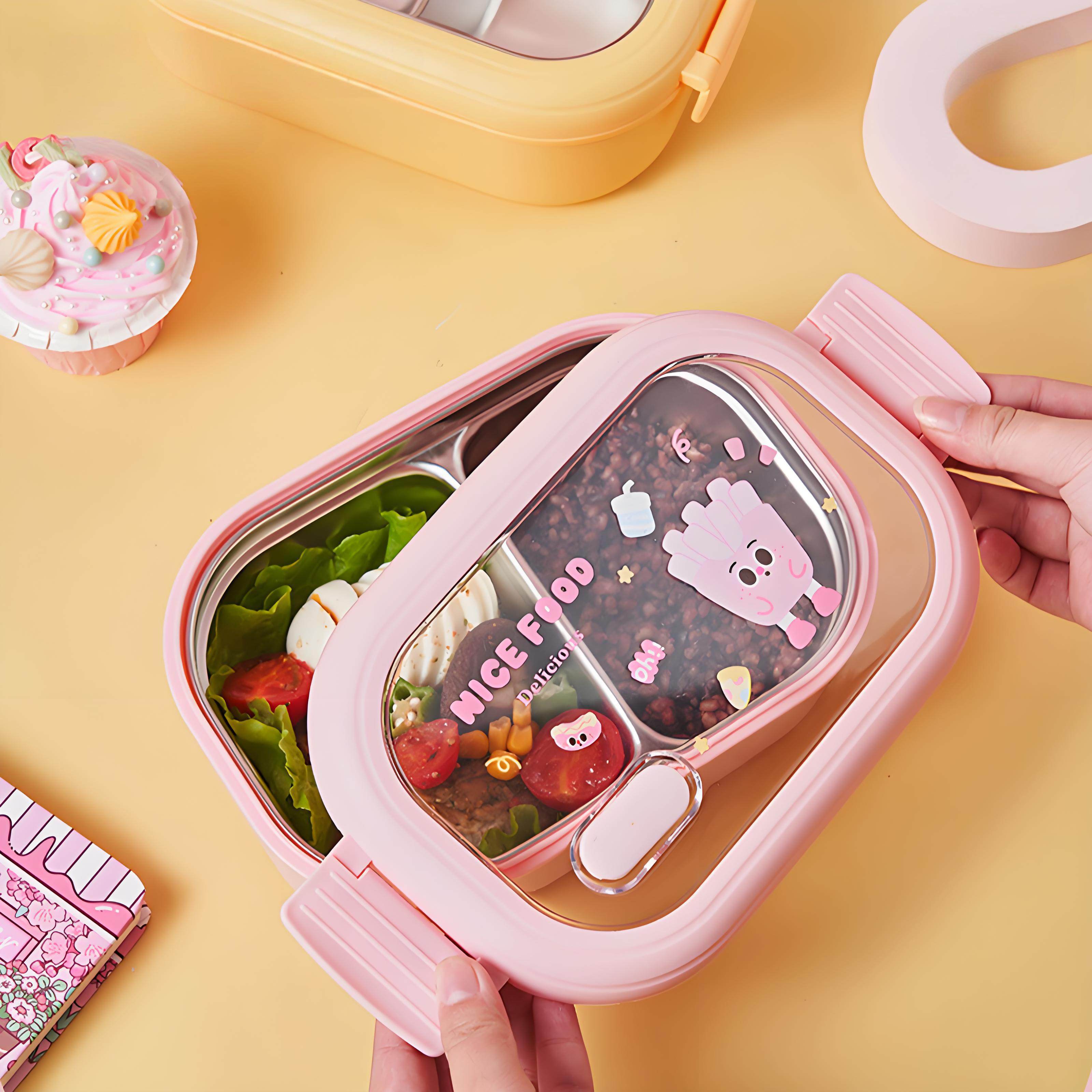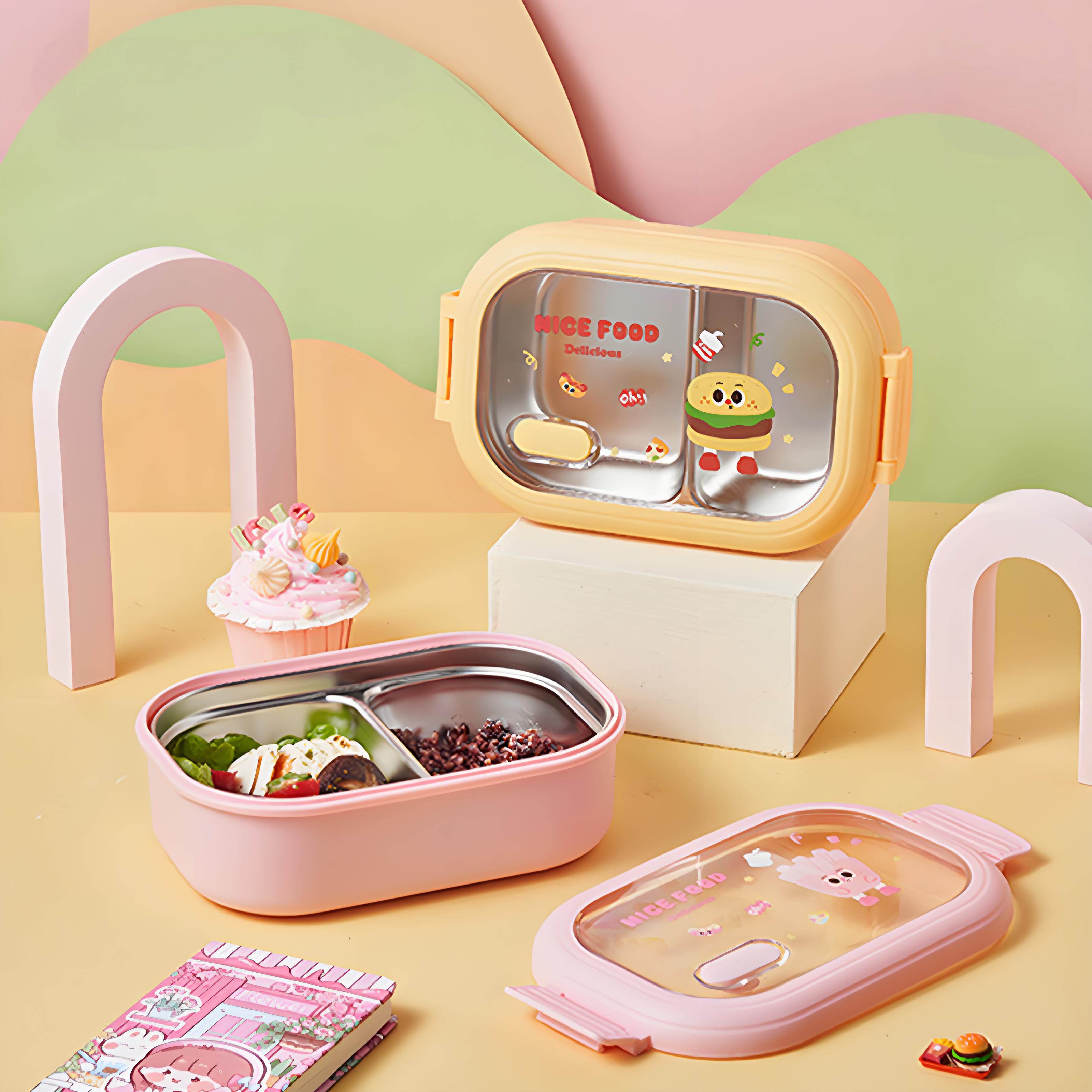 MOLA.Strong.饭盒不锈钢饭盒可爱高颜值薯条汉堡印花学生 此强