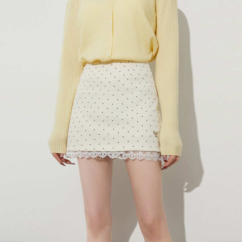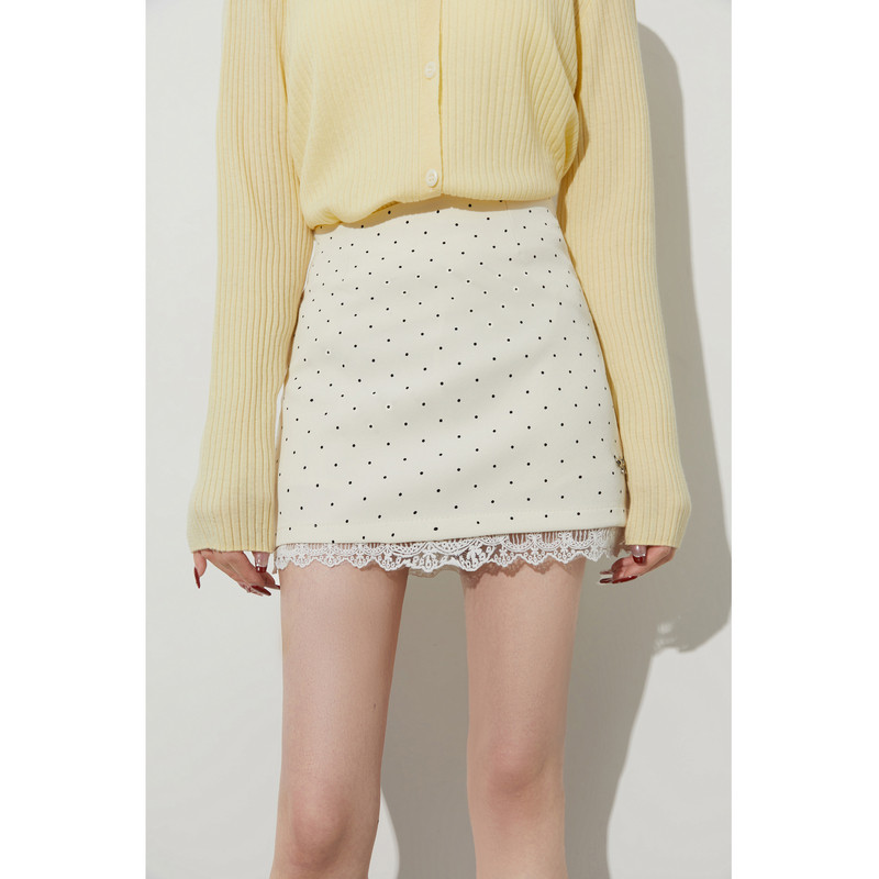 新款 2025年冬季 白色半身裙女波点蕾丝花边裙子短裙 惠品 DPLAY