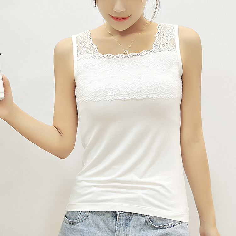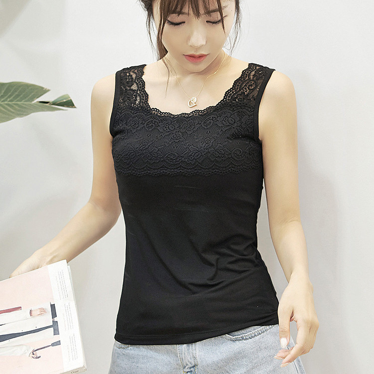 内搭上衣打底衫 女夏装 外穿无袖 高级感背心百搭吊带衫 蕾丝钩花修身
