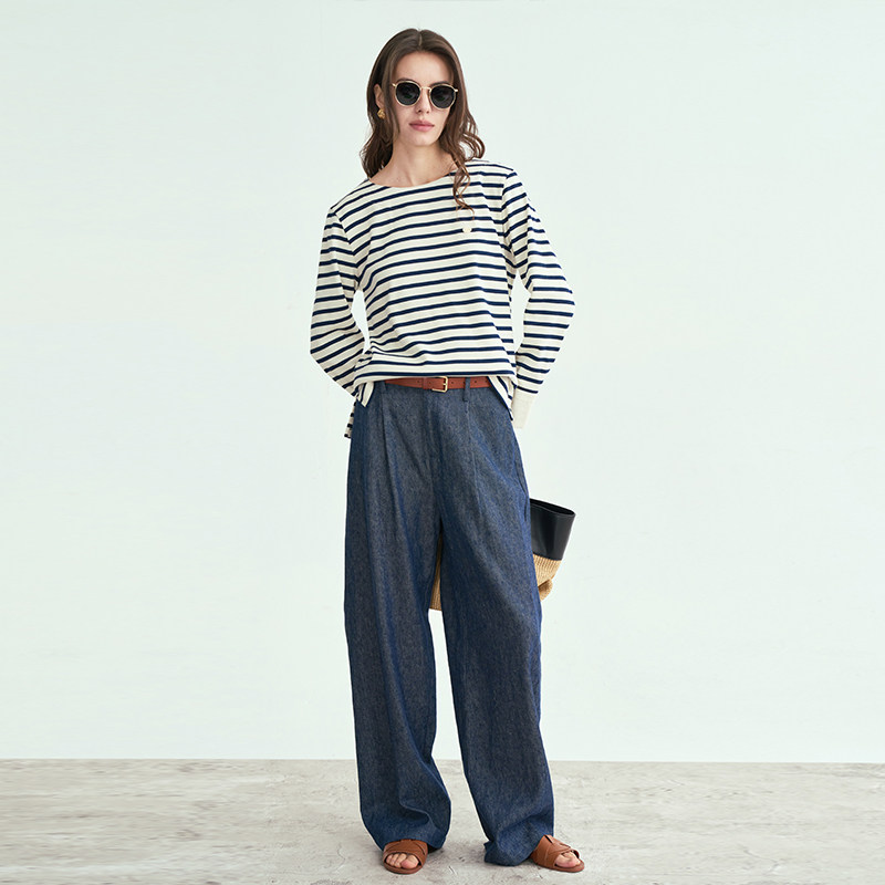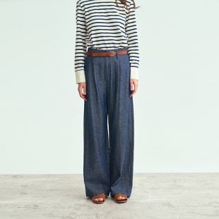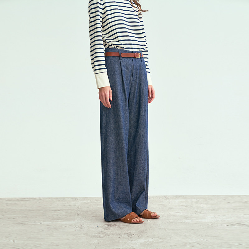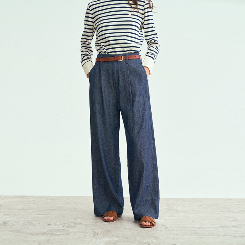 新品 25春季 天丝藏蓝色单褶牛仔裤 松弛感宽松直筒裤 LIAC 长裤 ROC