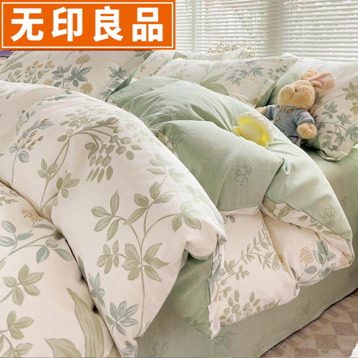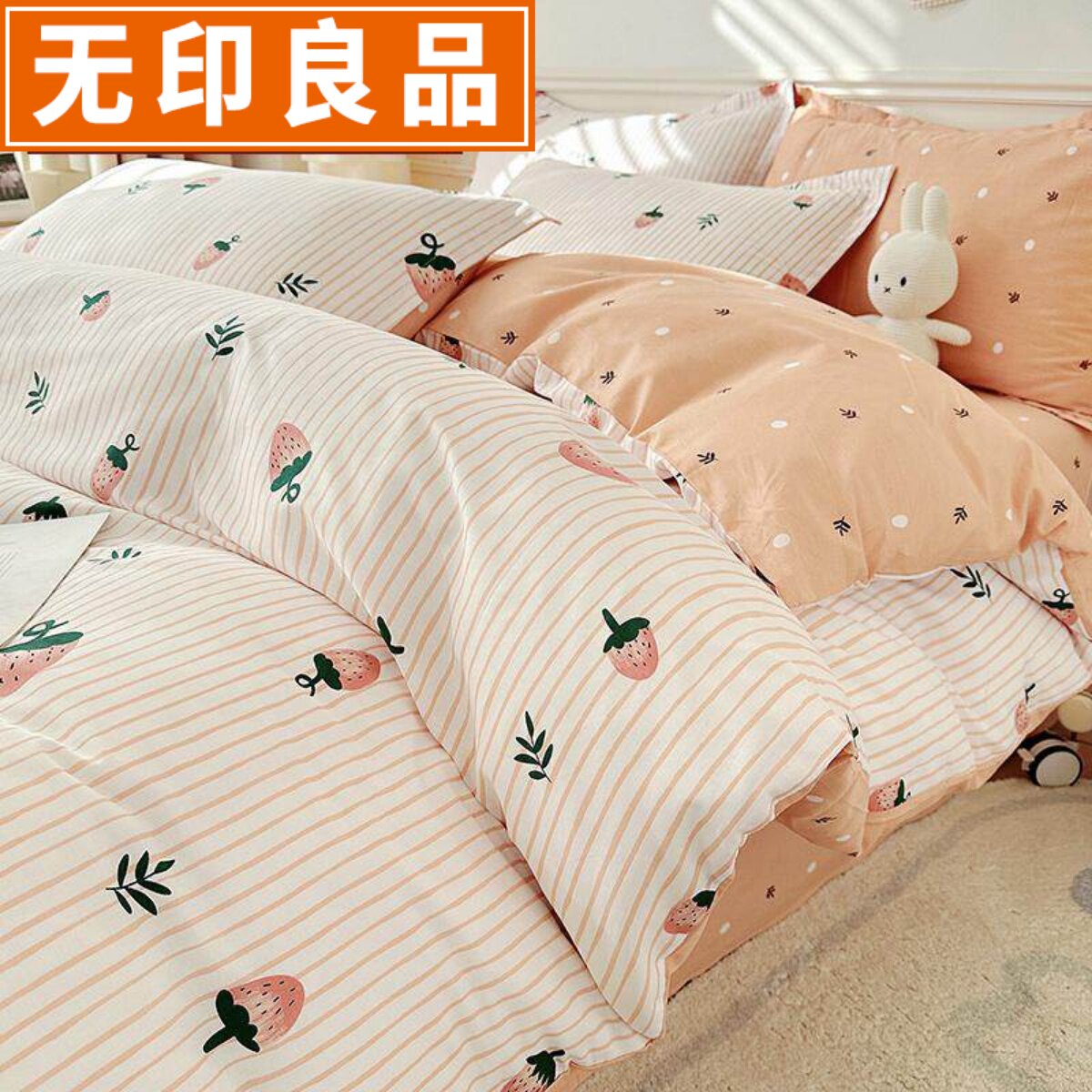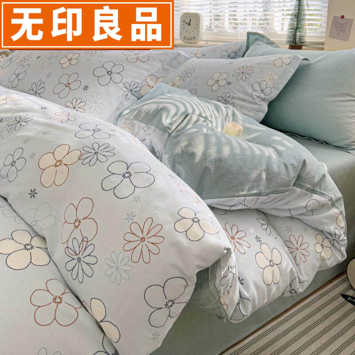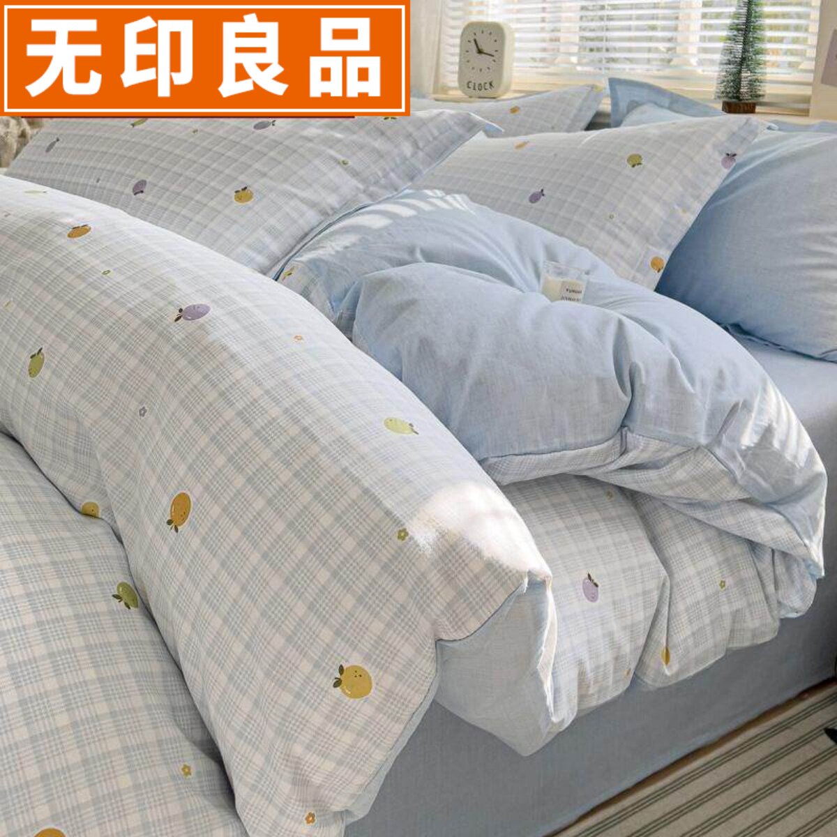 无印良品新款 全棉床上四件套纯棉裸睡被套床单单人学生宿舍三件套