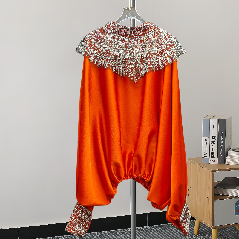 缎面上衣女 女高端洋气重工钉珠亮片宽松显瘦蝙蝠袖 法式 宫廷风衬衫