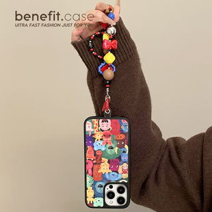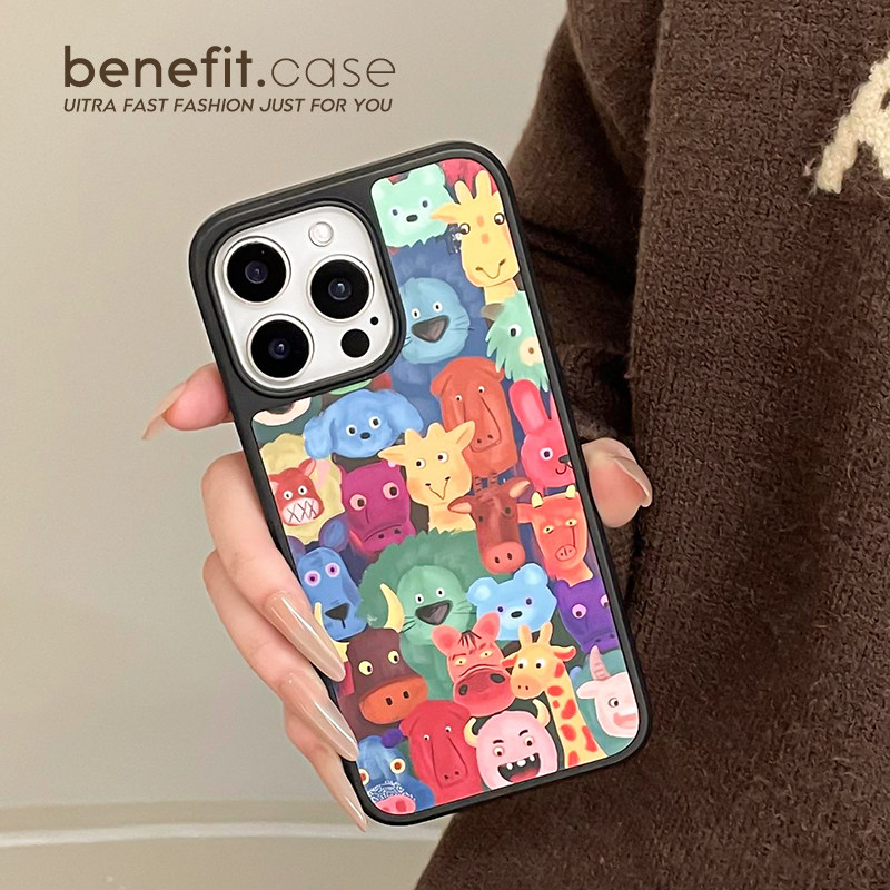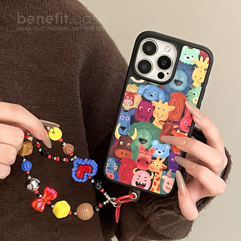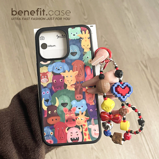 benefit搞怪丛林油画动物带蓝红积木手链17适用于iphone16promax苹果15PRO磁吸手机壳13新款 14套12冰川纹防摔