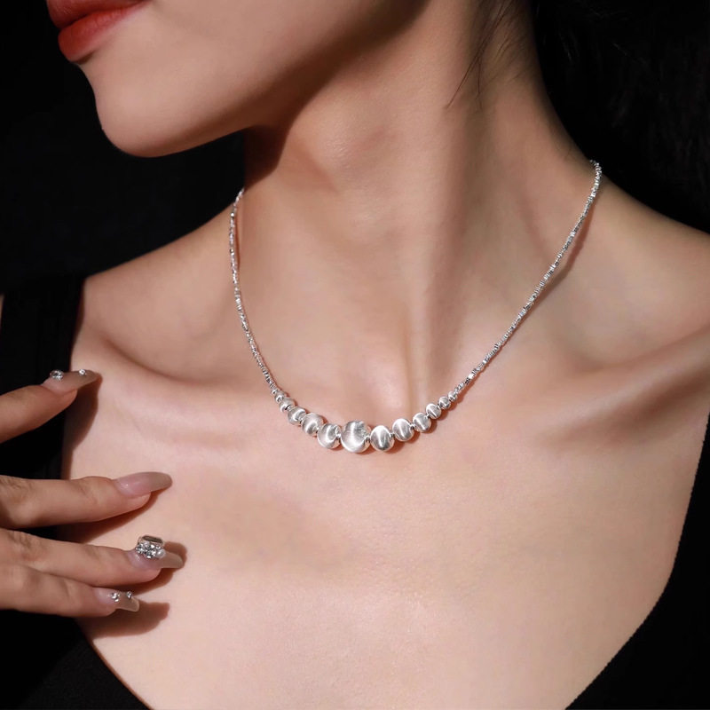 渐变拉丝猫眼碎银项链轻奢小众高级感气质锁骨链精致时尚 独特颈链