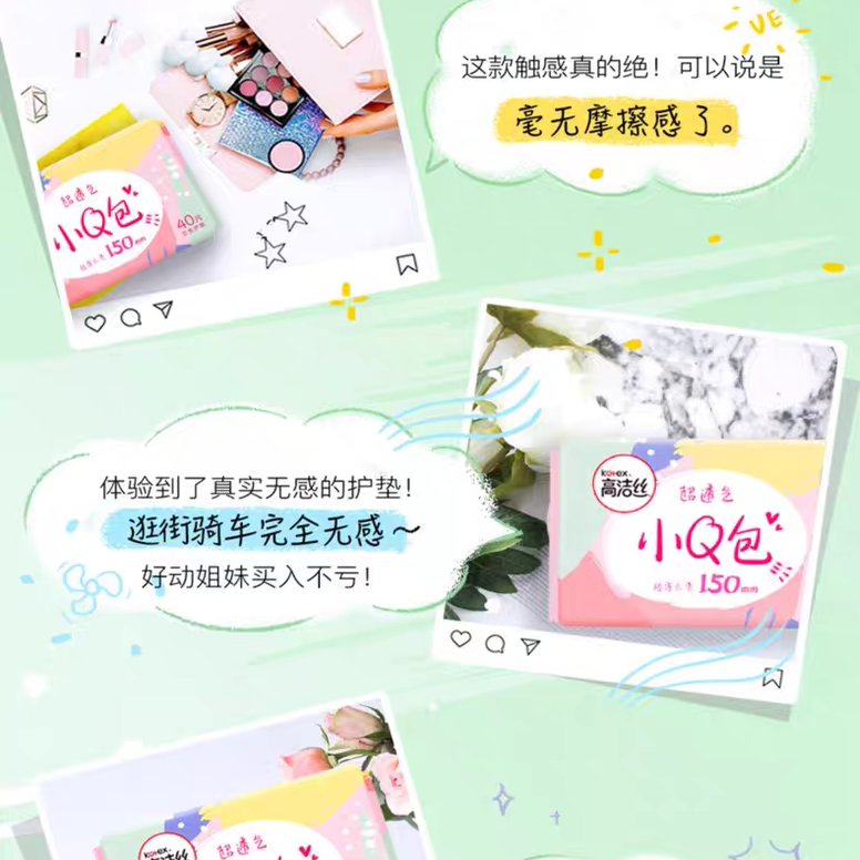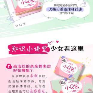 高洁丝小Q包极薄卫生护垫无香女150mm超薄柔软纯棉日用迷你姨妈巾
