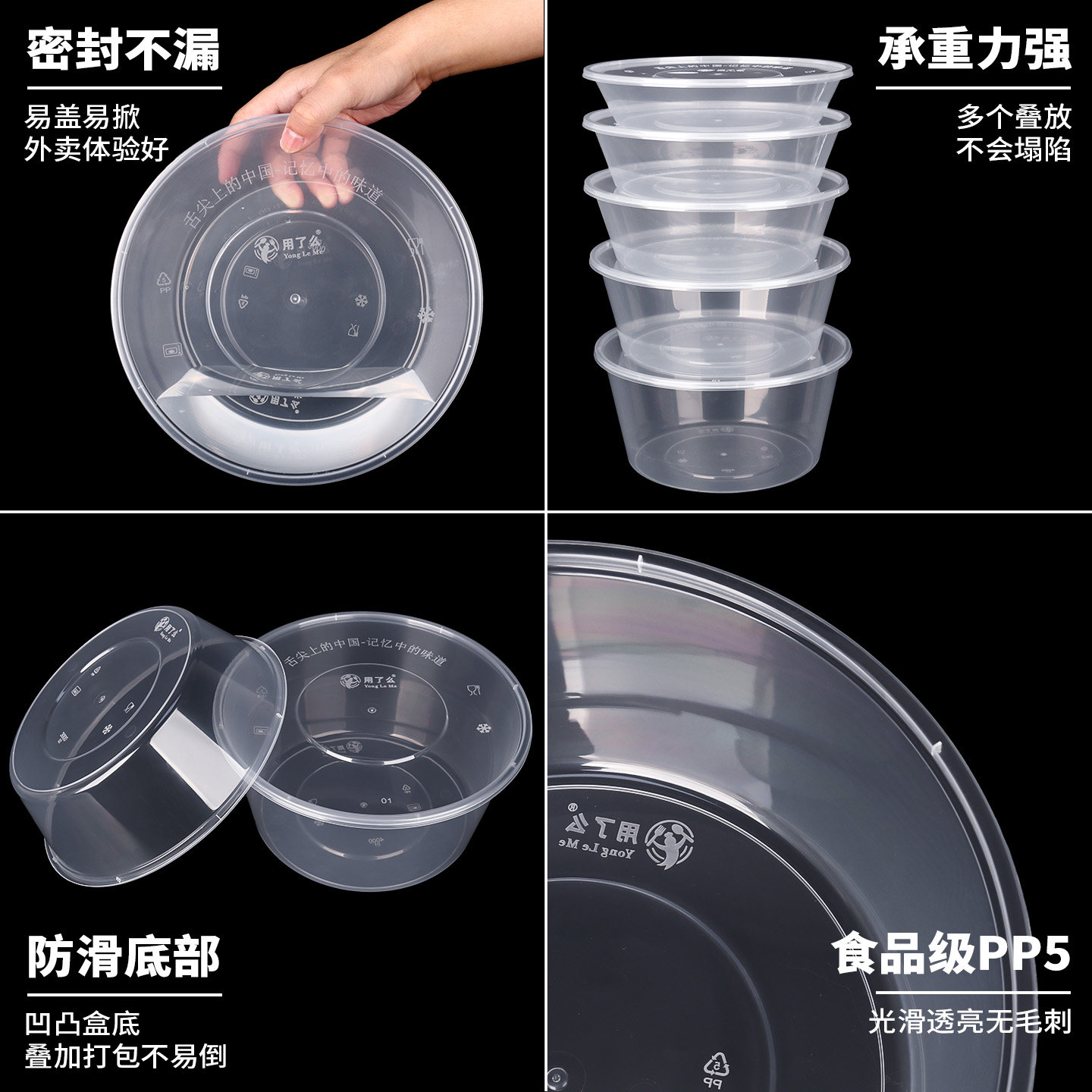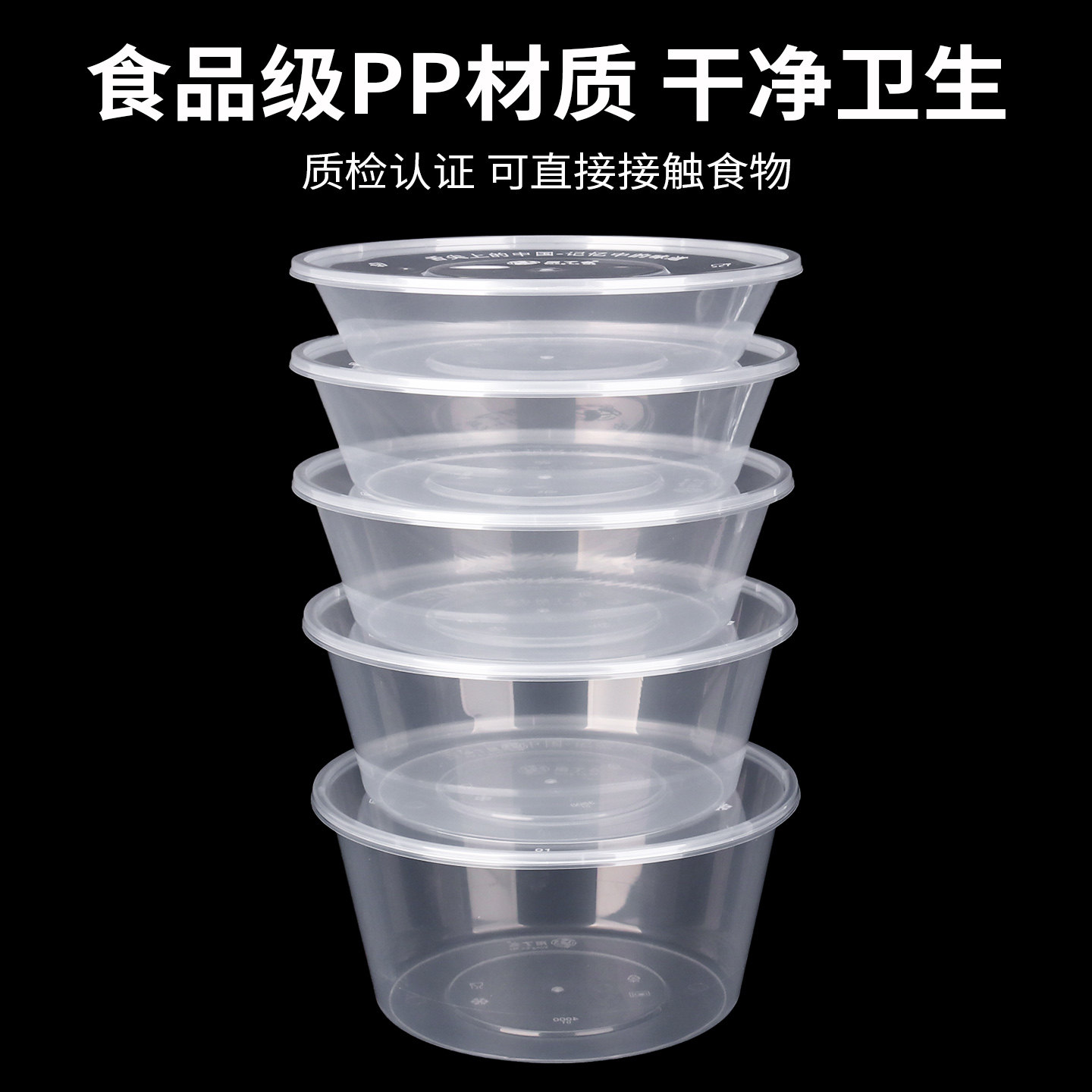 食品级耐高温圆形一次性餐盒塑料打包加厚透明外卖饭盒带盖汤碗