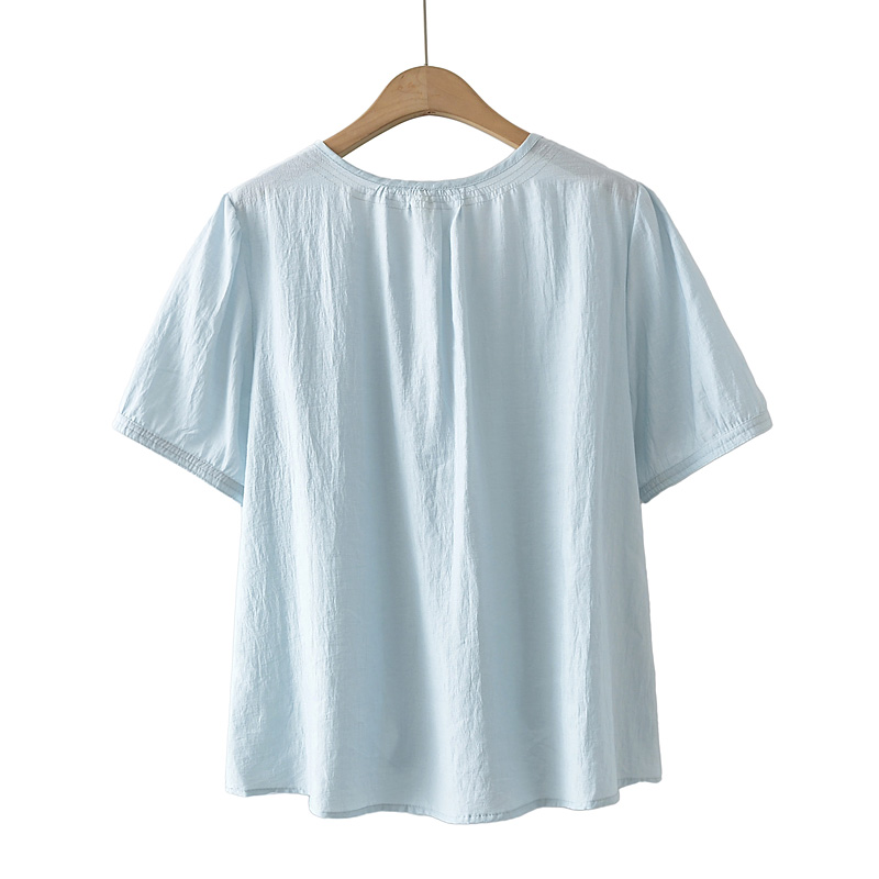 圆领小衫 中年妈妈短袖 衬衫 夏季 棉麻衬衣宽松显瘦上衣 2025新款 大码