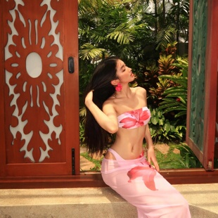 比基尼泳衣女2025新款 泰国绝美粉色分体三件套性感长裙海岛度假风
