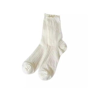 白色中筒袜子女夏季 堆堆袜纱无骨网眼透气冰冰花边月子袜 薄款