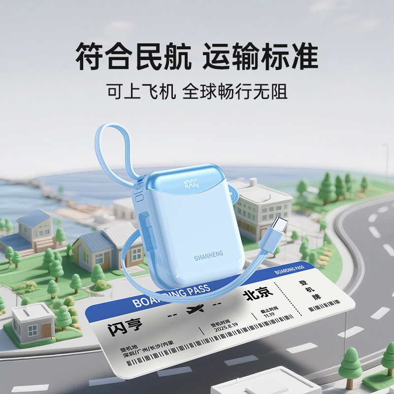 充电宝35W快充超大容量20000毫安自带线超薄小巧便携适用iphone16小米华为 闪亨2025新款 3C认证可上飞机