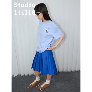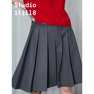 灰色 白色 学院风A字型半身裙百搭中长百褶裙 蓝色 Studio1till8