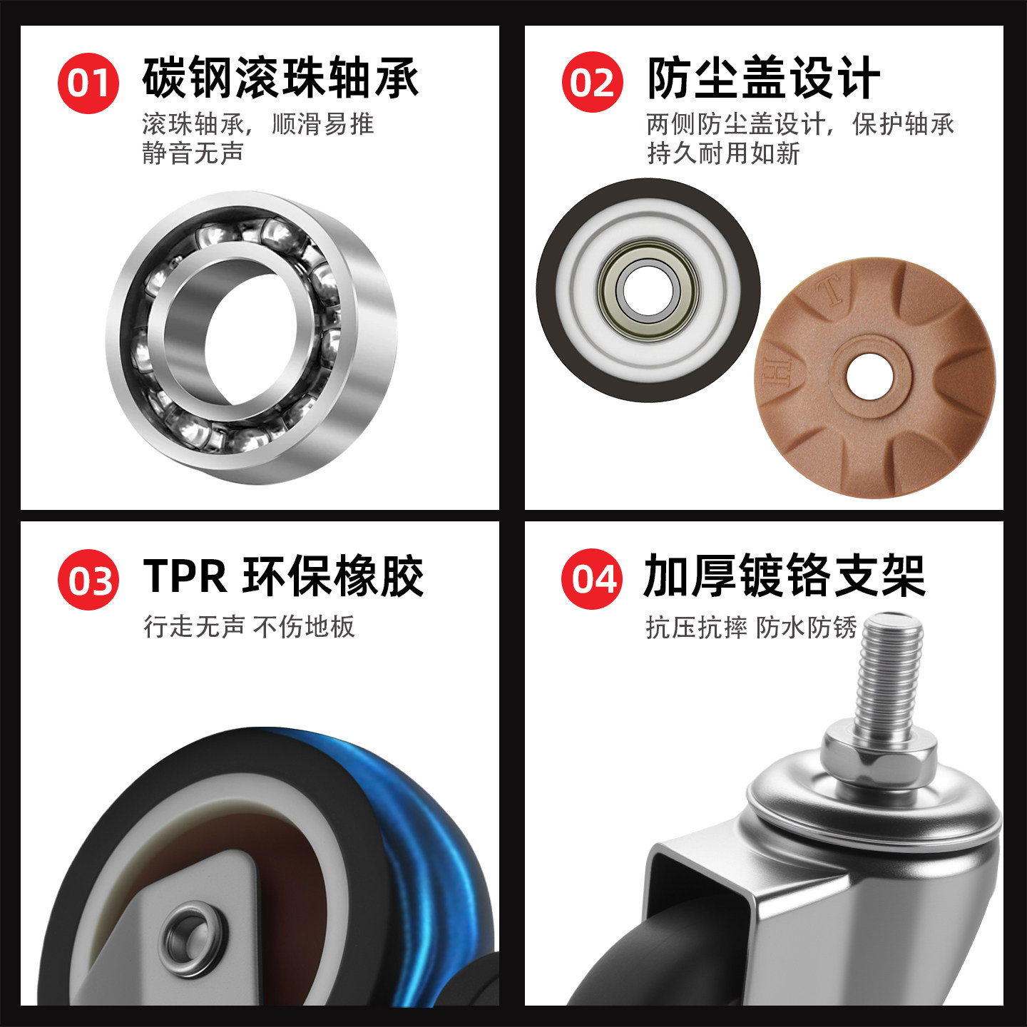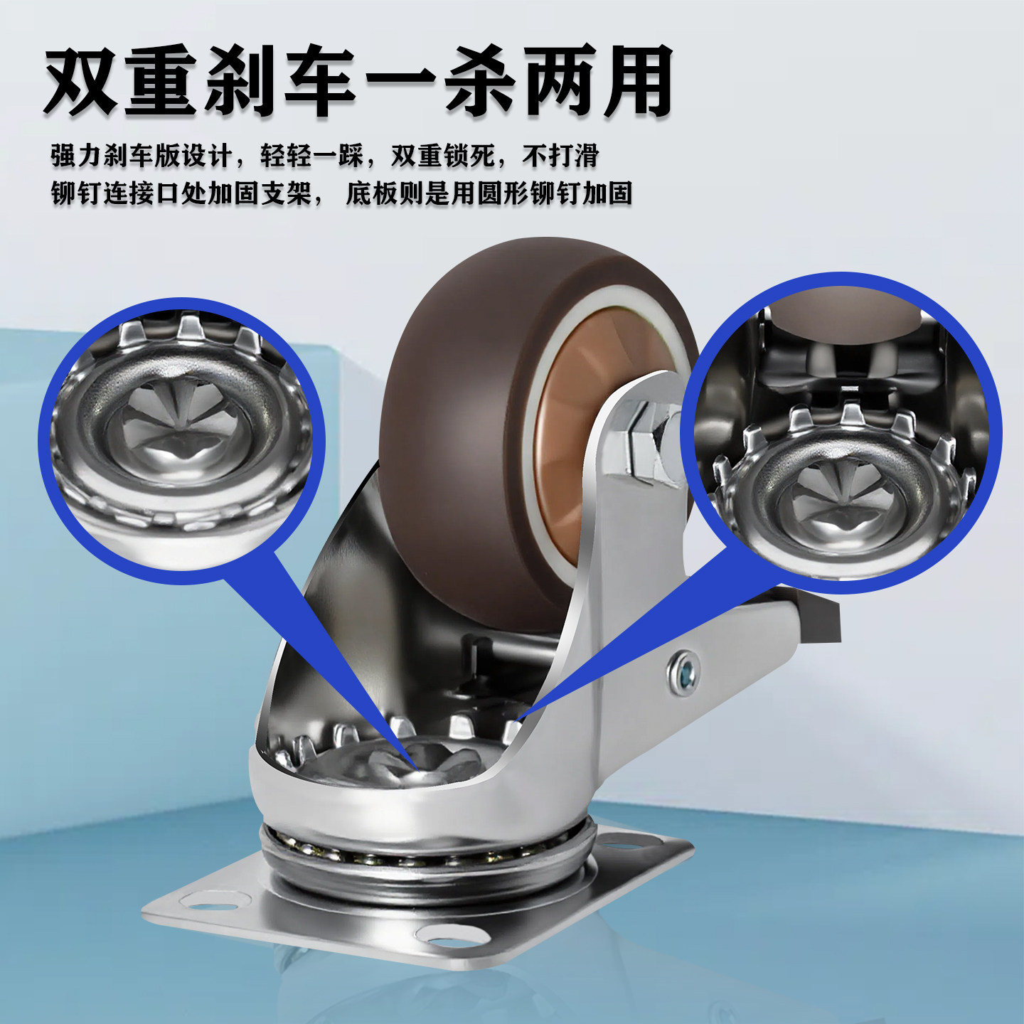 平板万向轮主机底座轮子家具移动滑轮承重轱辘脚轮配件轮刹车滚轮