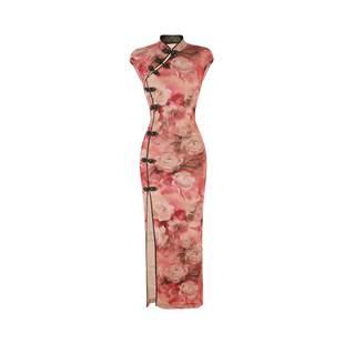 画报夫人原创自制新中式 兰陵王 提花缎面挖肩旗袍连衣裙