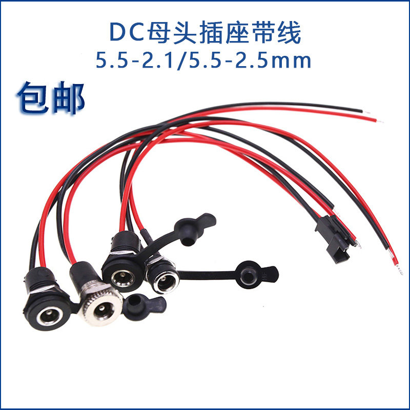 2.1 022B母头插座带线转SM头防水DC直流电源接口5.5 2.5mm 099