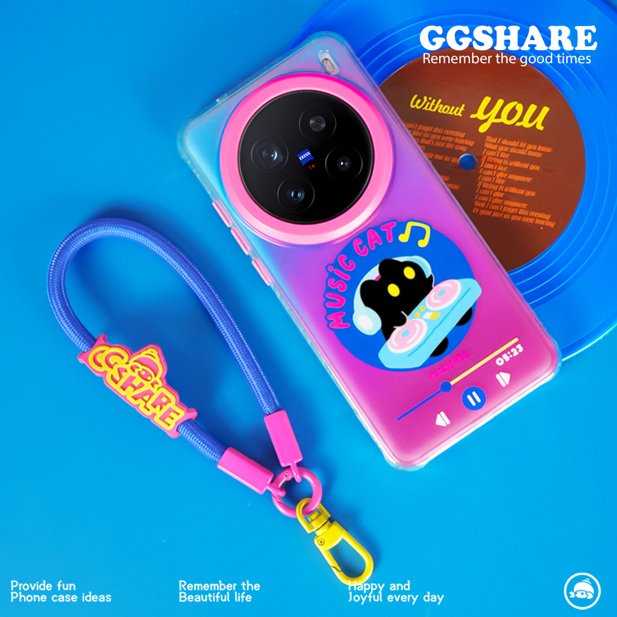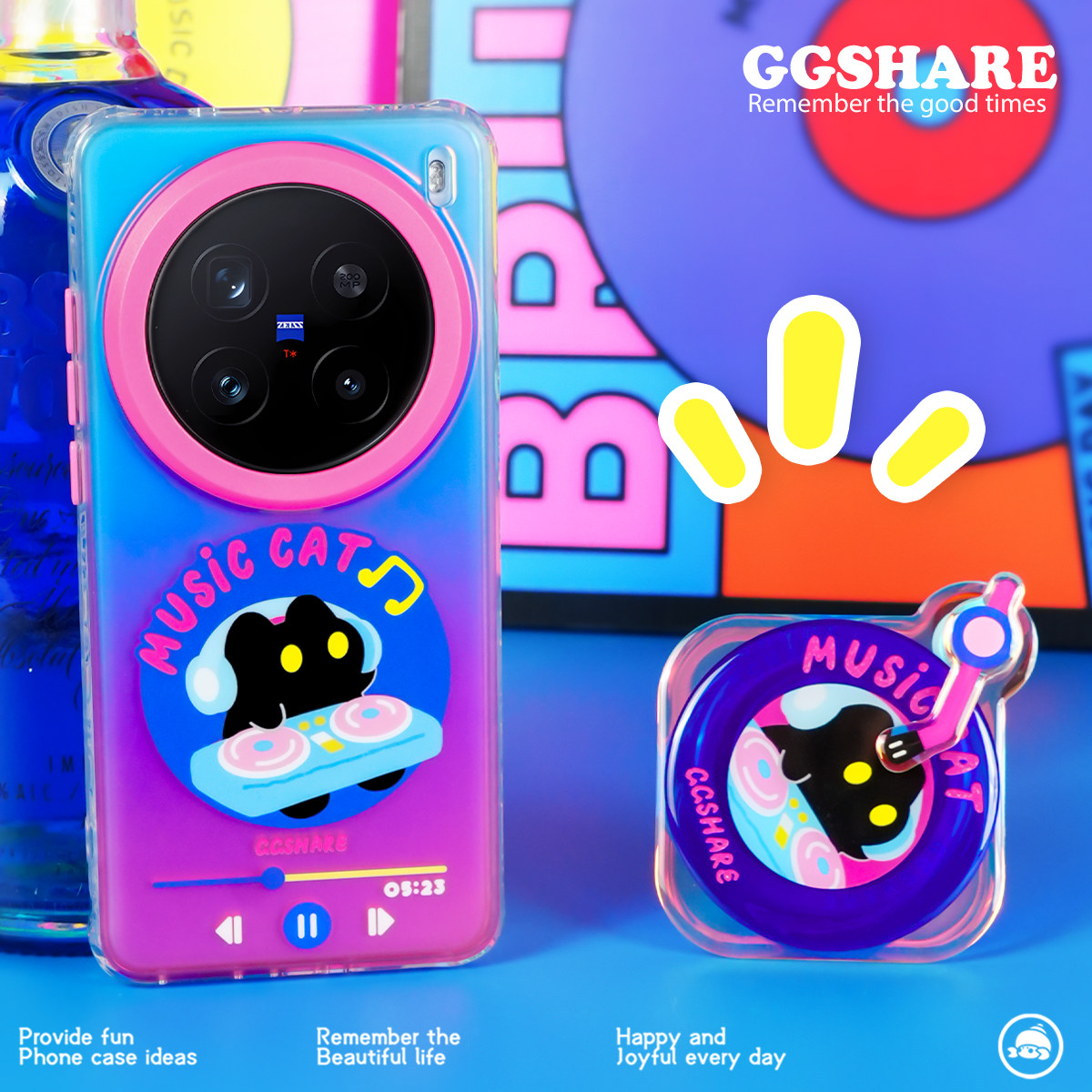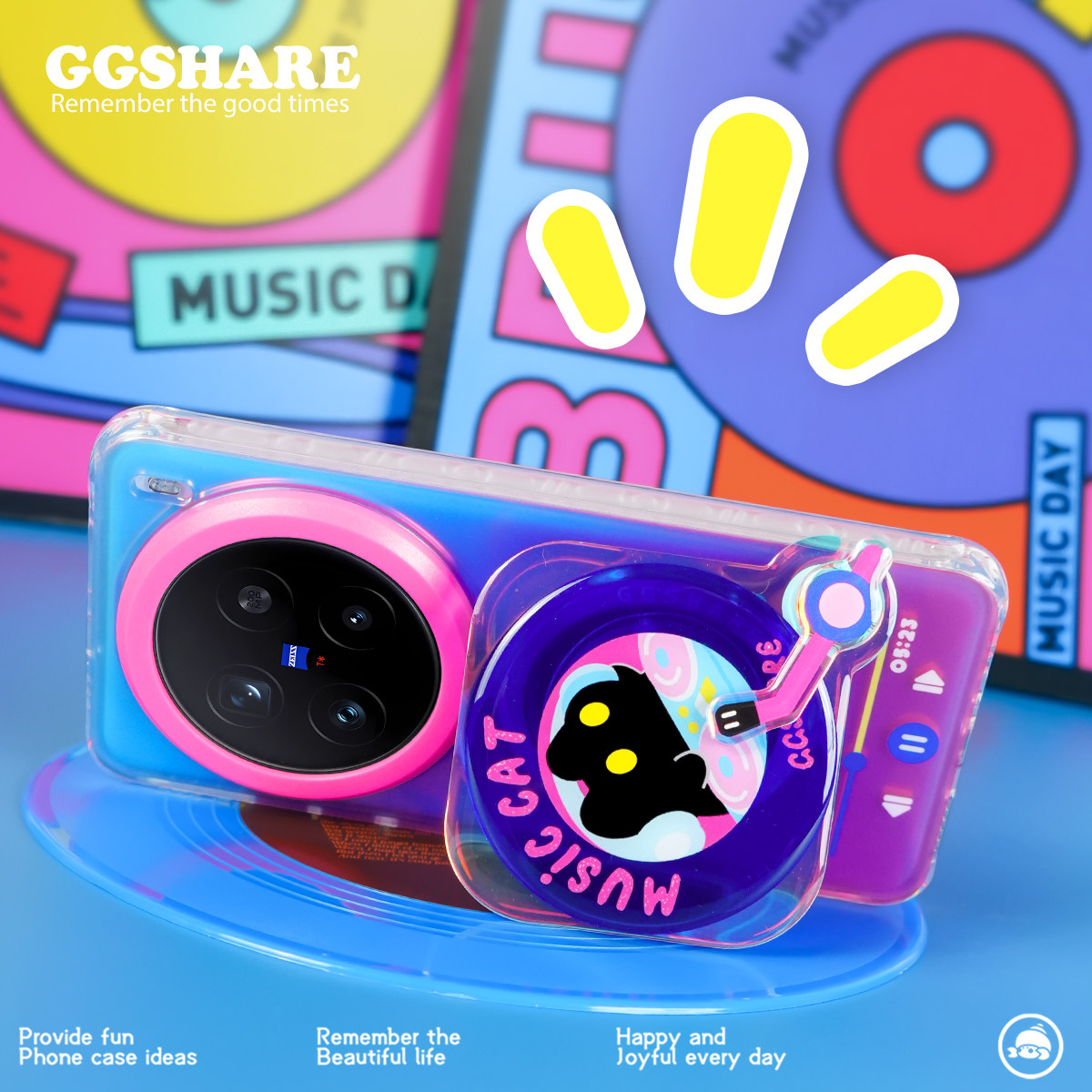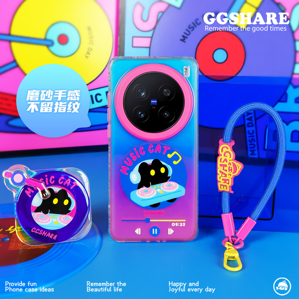 GGSHARE寄居蟹原创唱片猫适用vivox200pro手机壳带磁吸支架 x200ultra手机套磨砂高级感超好看手腕绳防丢 新款