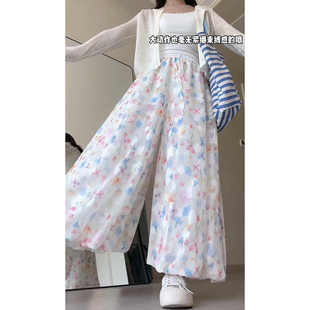 慵懒感高腰冰丝九分花苞裤 2025新款 女夏季 森系小清新碎花阔腿裙裤
