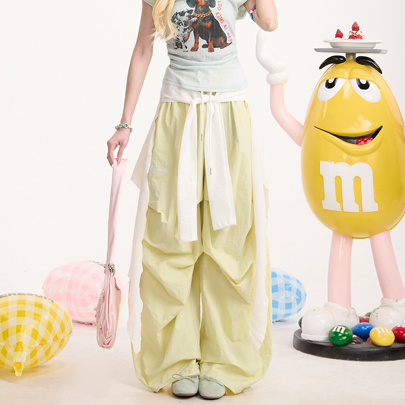 垂感显瘦休闲裤 复古潮牌街舞阔腿裤 子 屁帘褶皱伞兵裤 NERESUM美式
