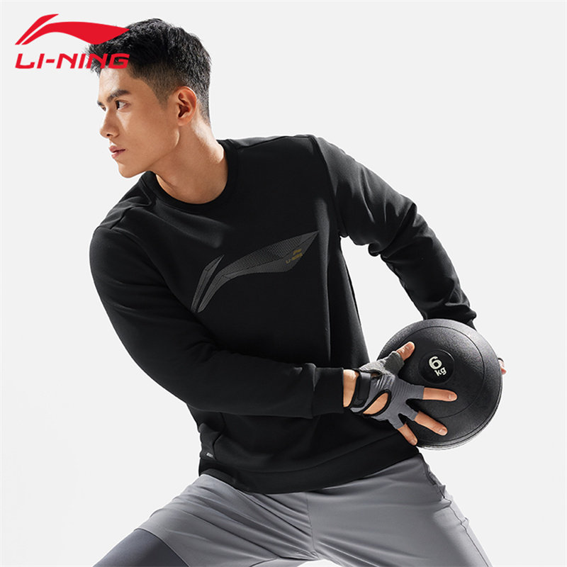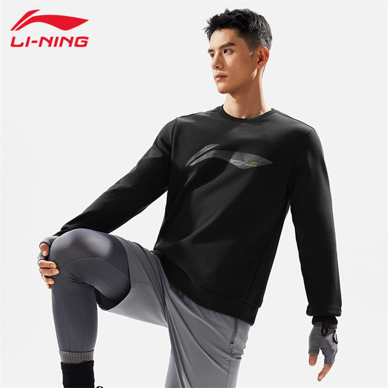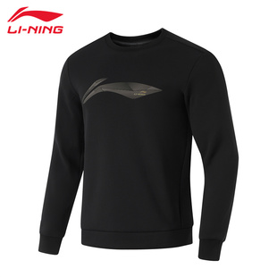 李宁加绒保暖圆领卫衣男士 百搭套头运动上衣AWDU567 休闲秋冬新款