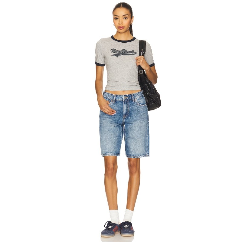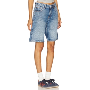 REVOLVE小众新款 Dr. 休闲风阔腿五分牛仔裤 复古蓝色短裤 Denim美式