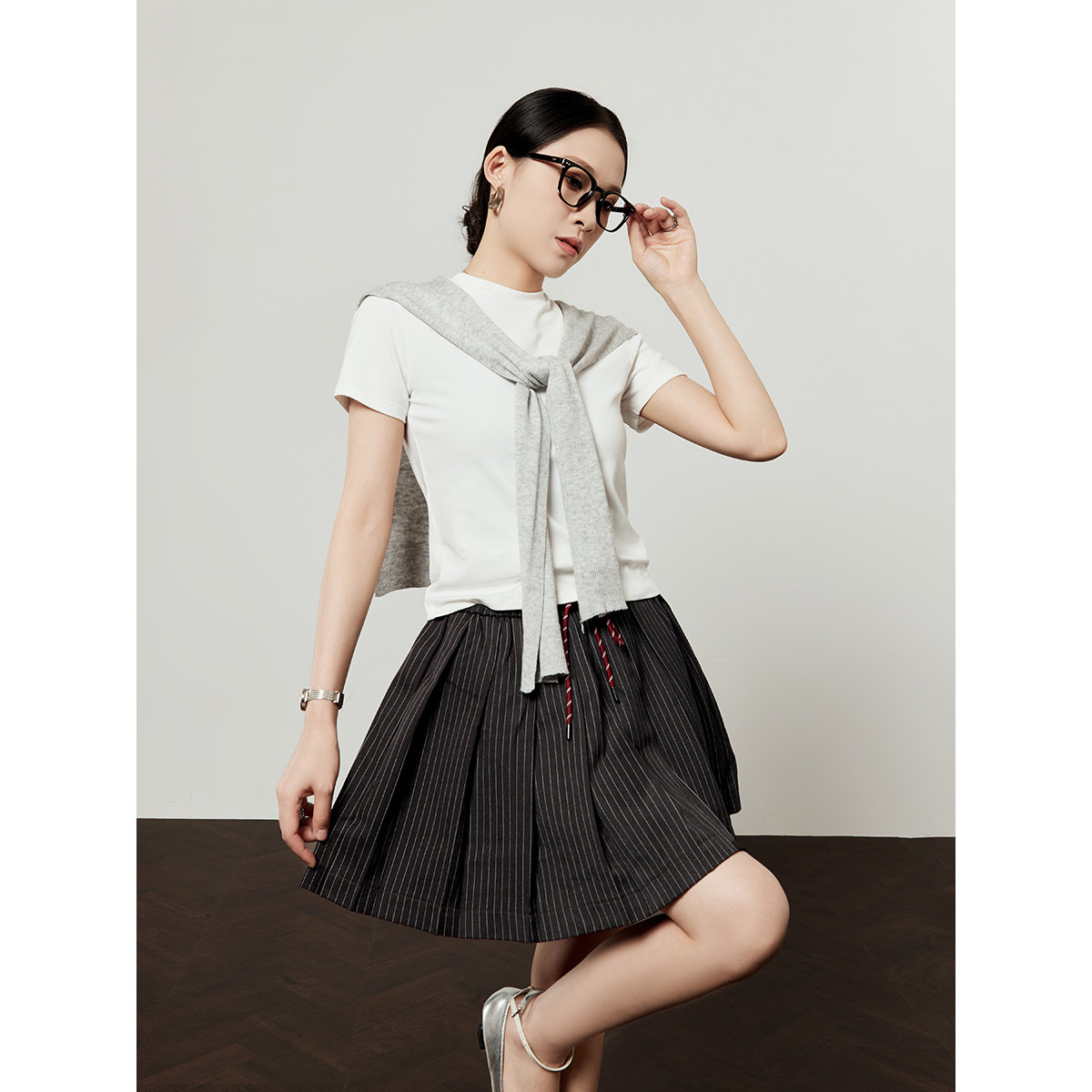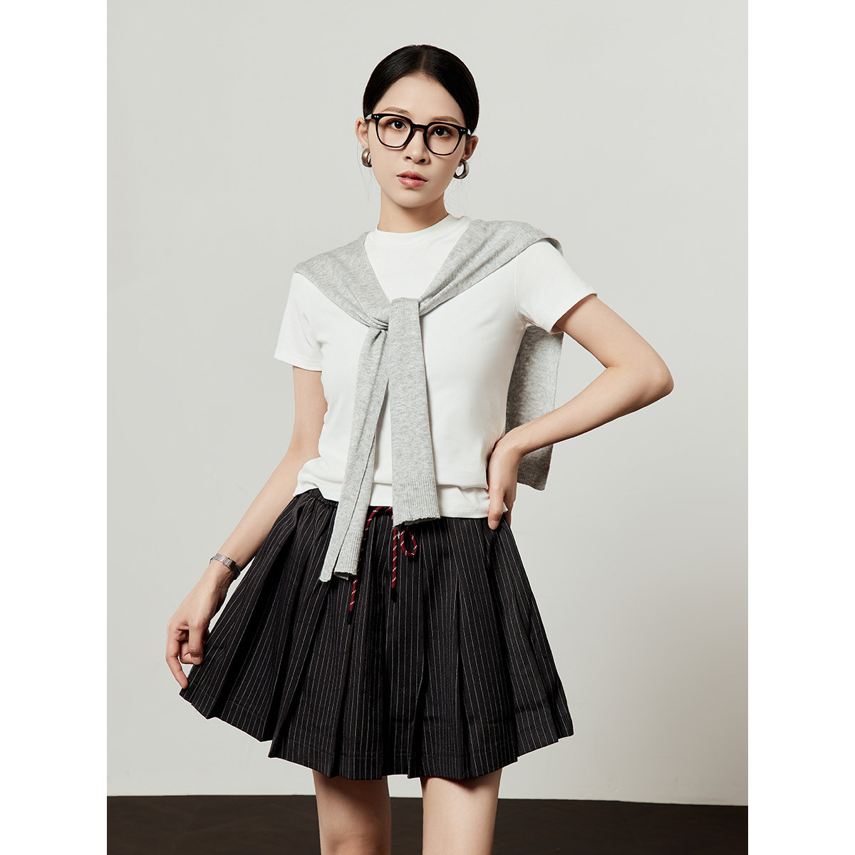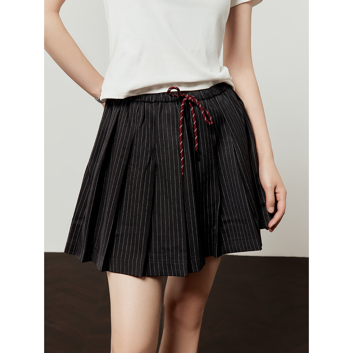 高级感条纹学院风百搭单品短裙 新款 周里物 灰色半身裙女2025夏季