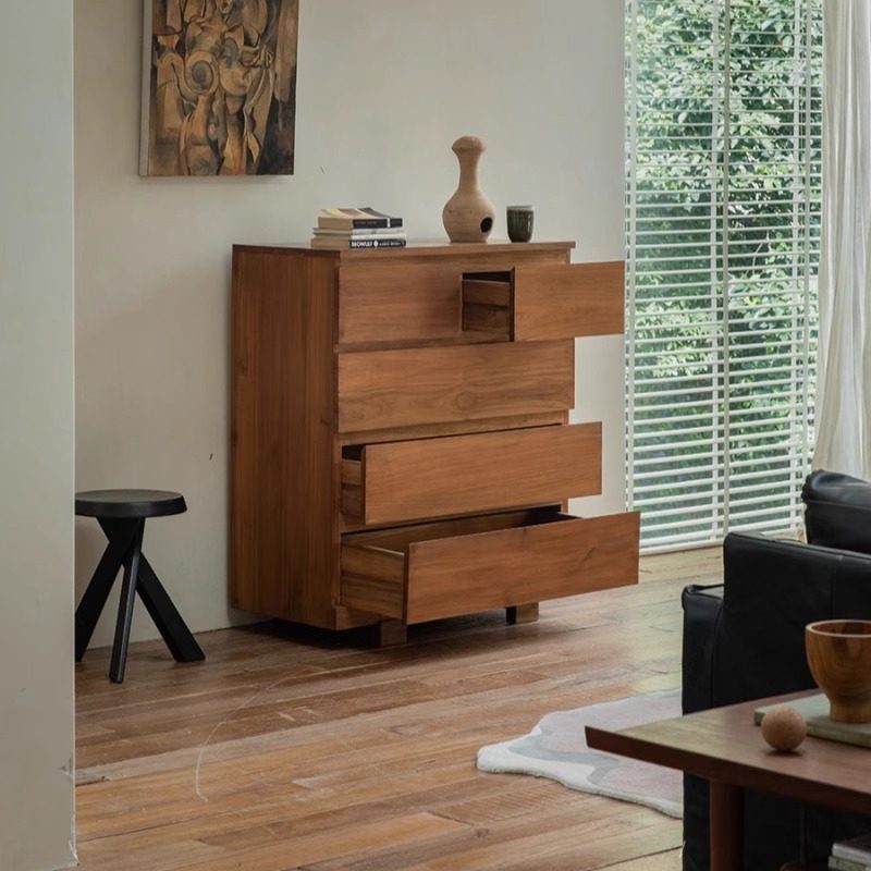 实木五斗柜简约现代卧室抽屉柜客厅靠墙收纳柜轻奢家用多功能斗柜