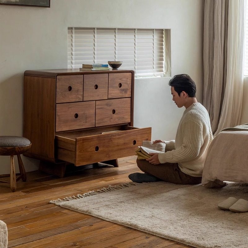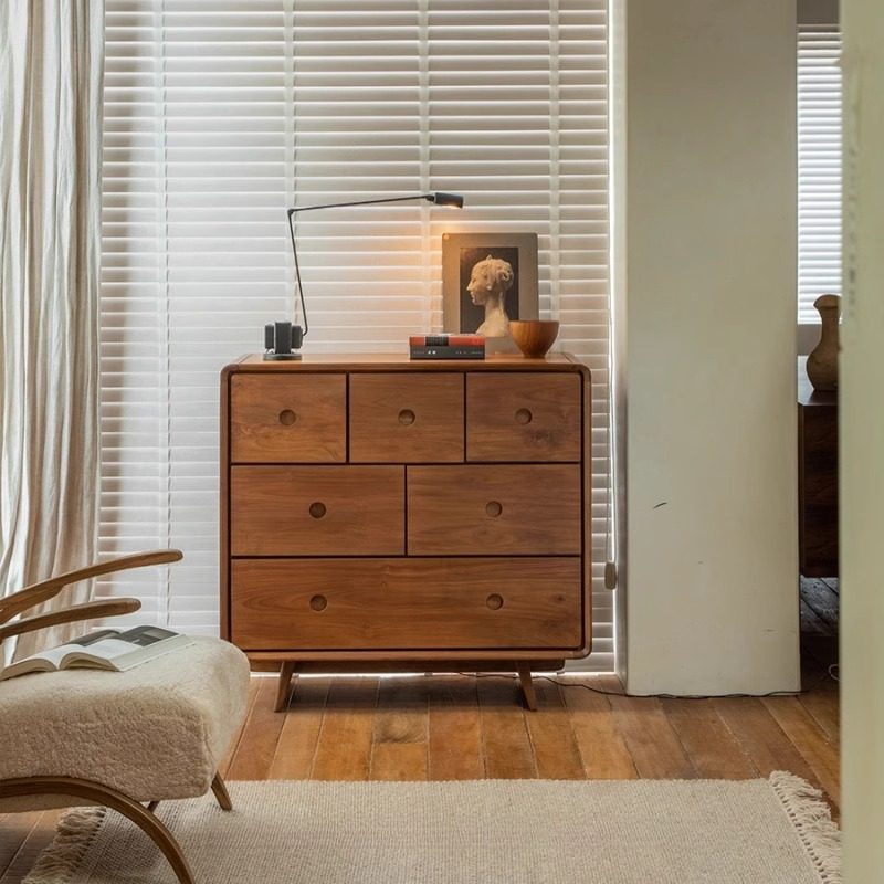 2025新款 卧室五斗柜实木客厅储物抽屉柜床尾置物柜收纳床头柜靠墙